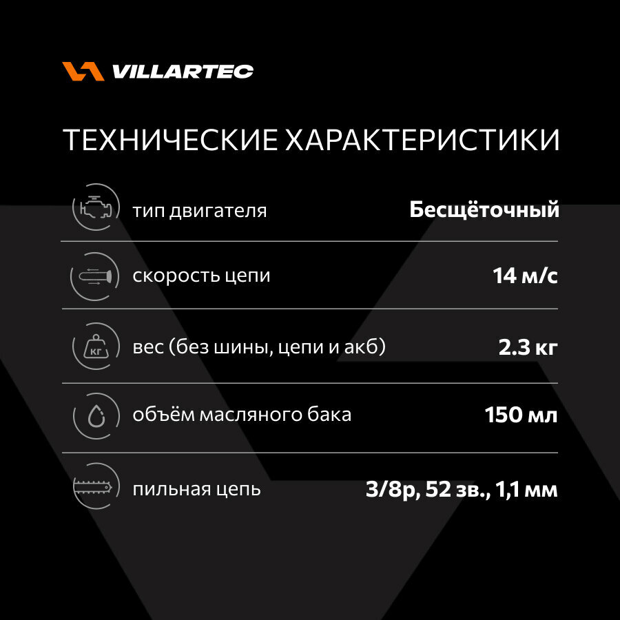 Аккумуляторная цепная пила 40 В / VILLARTEC SA40 информация: