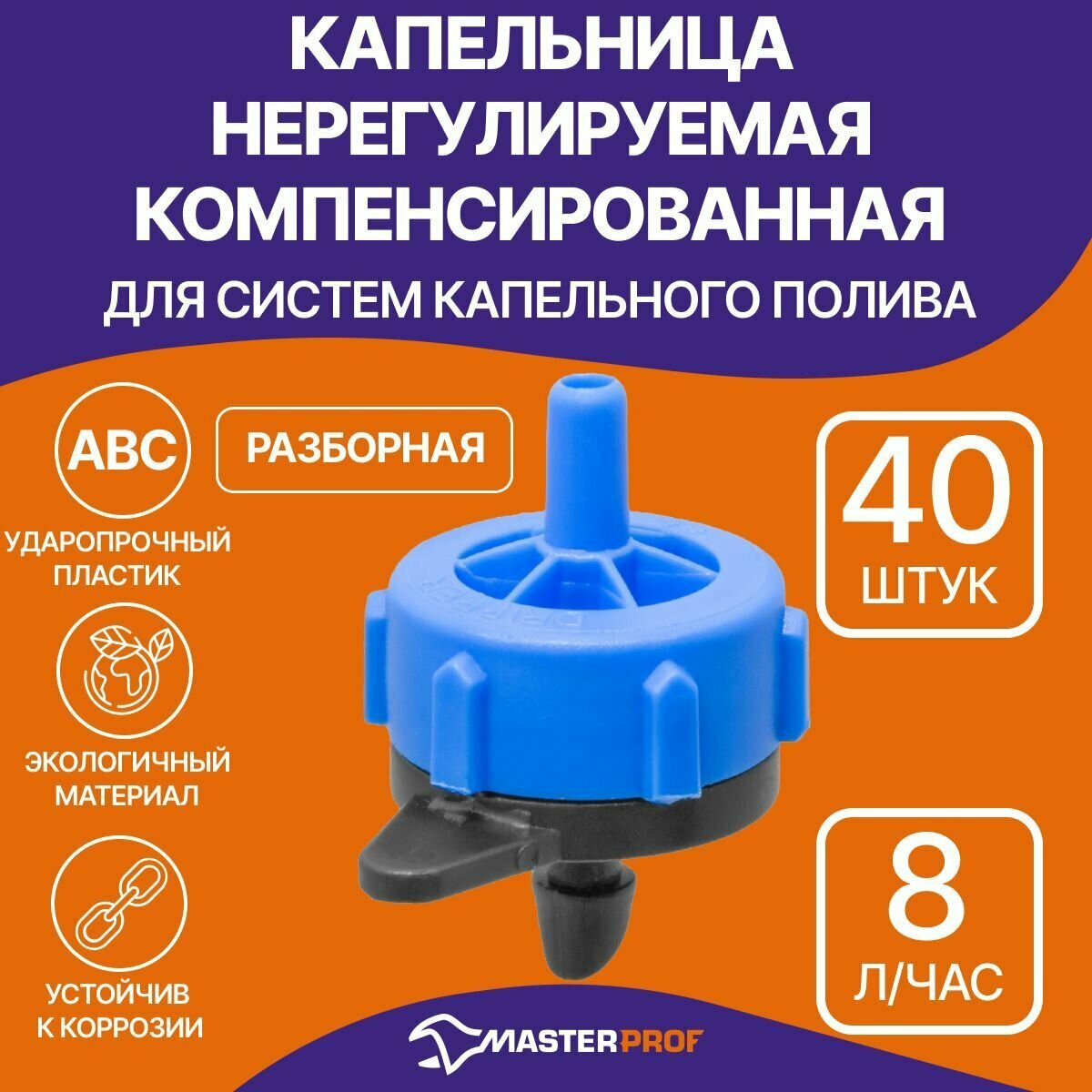 Капельница нерегулируемая компенсированная для систем капельного полива, разборная, 8 л/ч, 40 шт. информация: