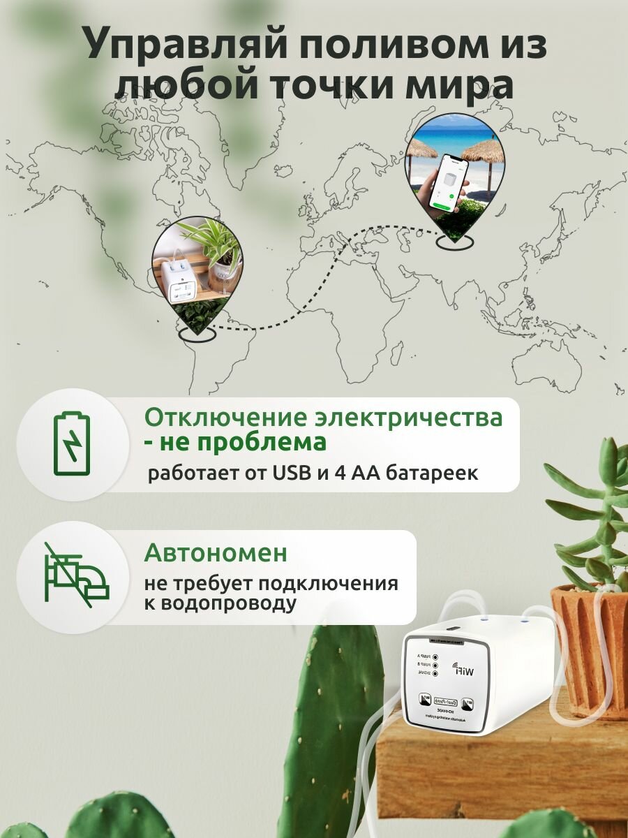 Капельный полив Classmark автополив для комнатных растений и цветов, дистанционное управление по Wi-Fi, питание от сети и батареек, белый информация: