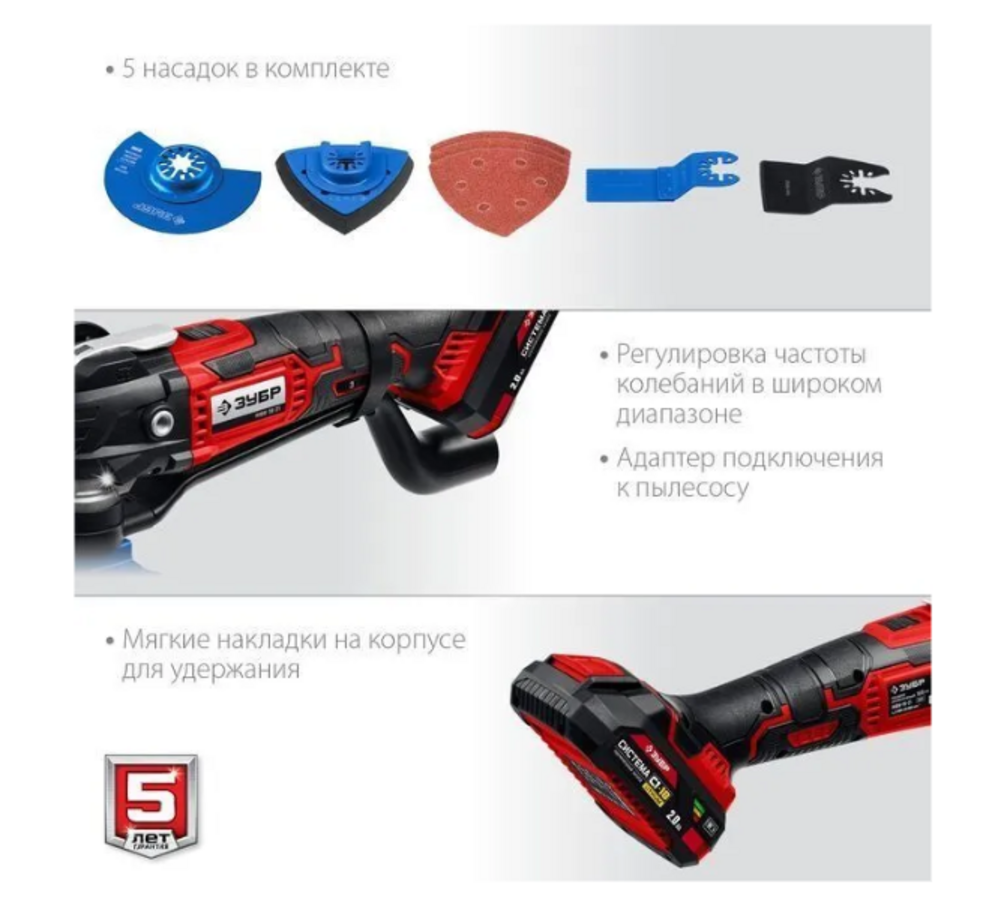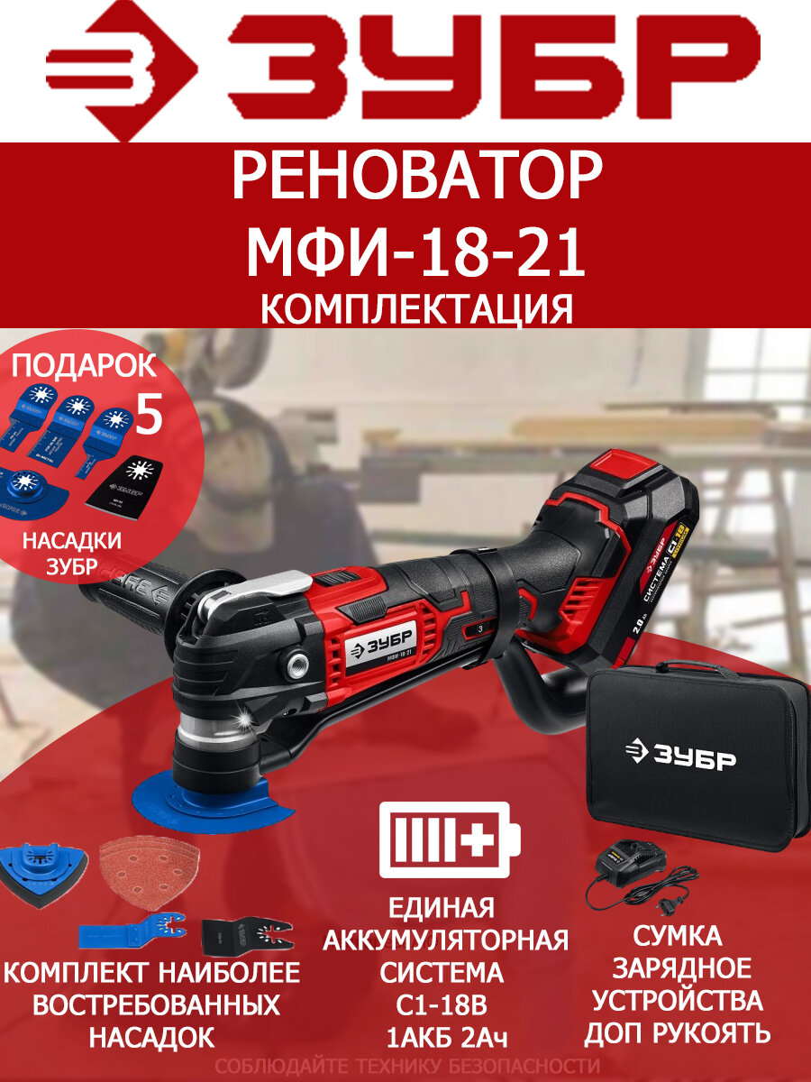 Реноватор ЗУБР 18 В 1 АКБ набор насадок сумка МФИ-18-21+5 насадок информация: