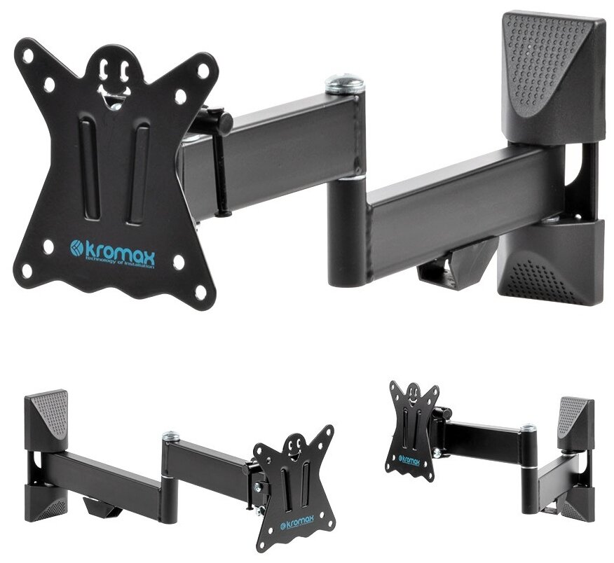 10 цен на Кронштейн Kromax CASPER-104 Black Наклонно-поворотный для LED TV 10"-28", max 25 кг, настенный, 5 ст свободы, от стены 57-410 мм, max VESA 1