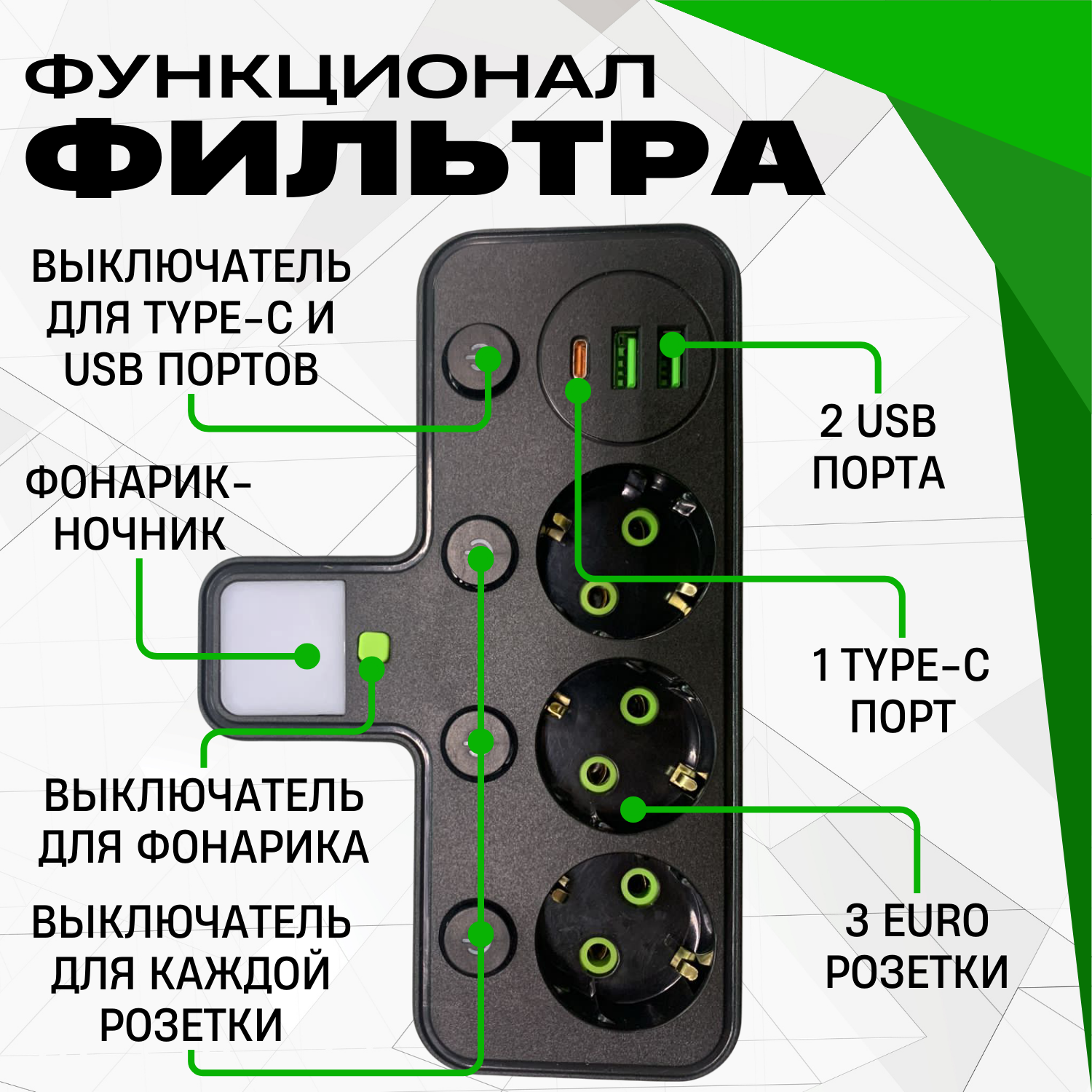 Тройник с 3 розетками и раздельными выключателями информация: