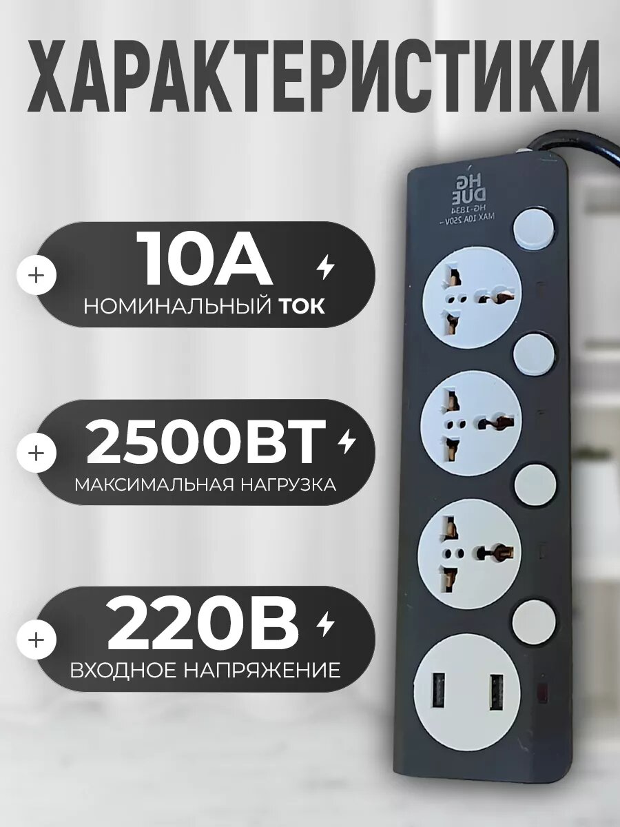Отзывы на Сетевой фильтр с 3 розетками и 2 USB Многофункциональный удлинитель с предохранителем Провод 3 метра Выключатель на каждой розетке