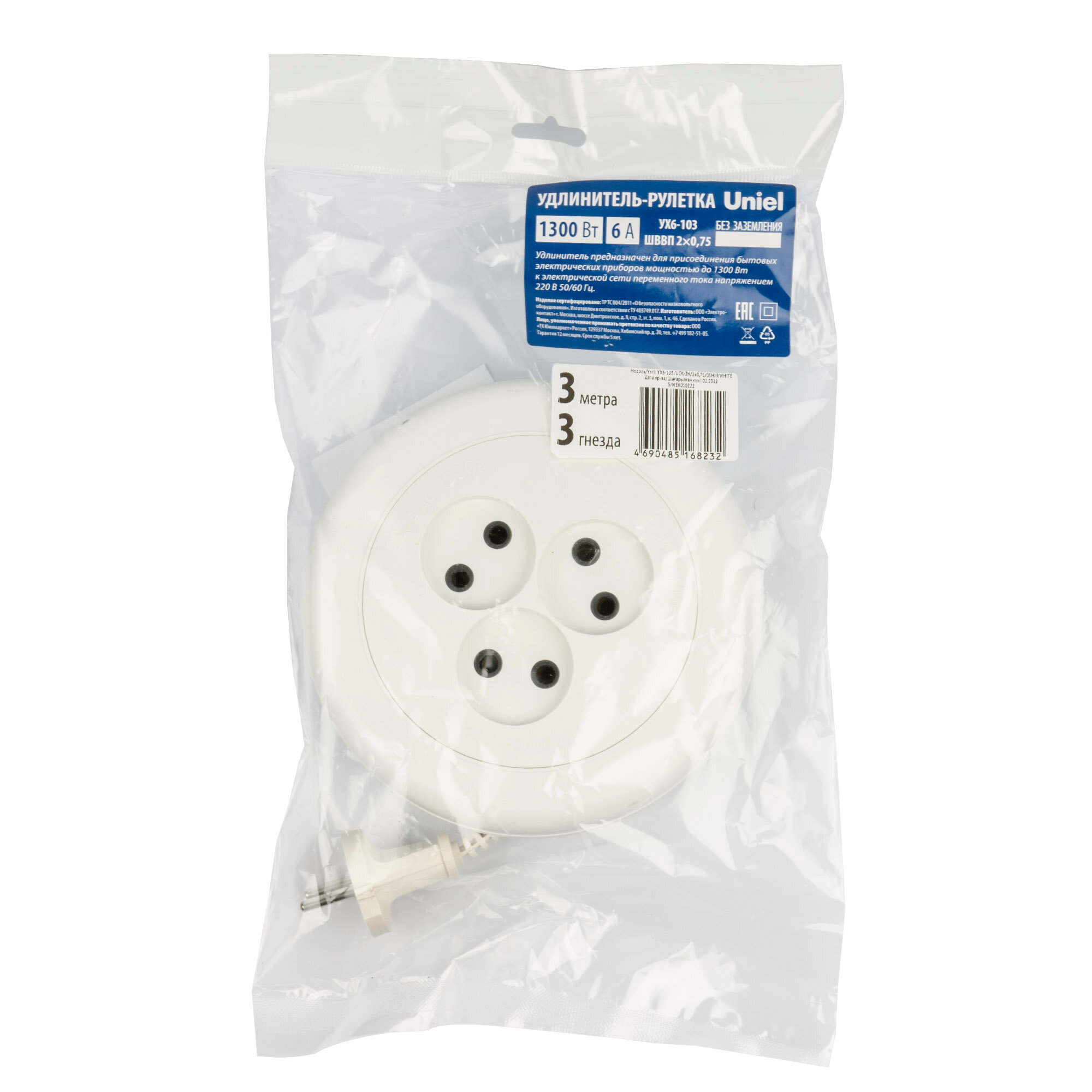 удлинитель без заземления рулетка Uniel UL-00009854 YX6-103 -UCK-3N-2x0.75-03M-R 3м белый информация:
