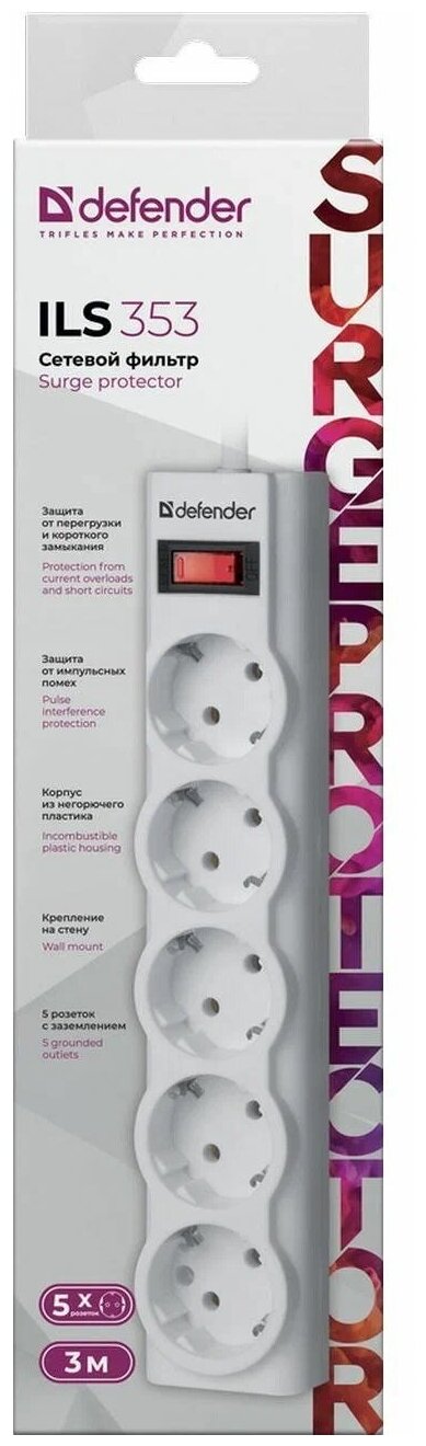 Defender Сетевой фильтр на 5 розеток Defender ILS 351 99351, белый (1.8м) (ret)