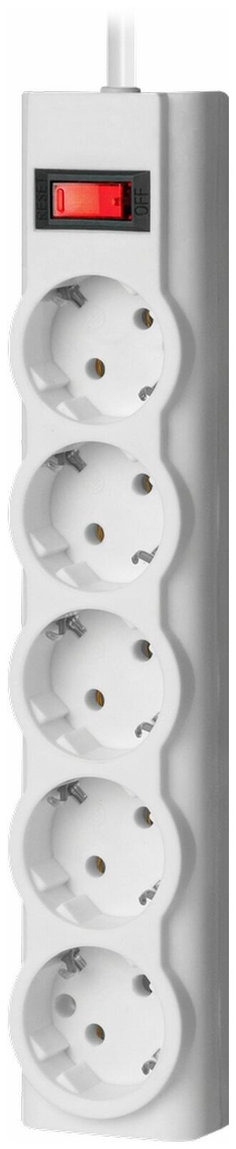 Сетевой фильтр-удлинитель Defender 5 розеток с заземлением , 1.8 метра , выключатель , белый