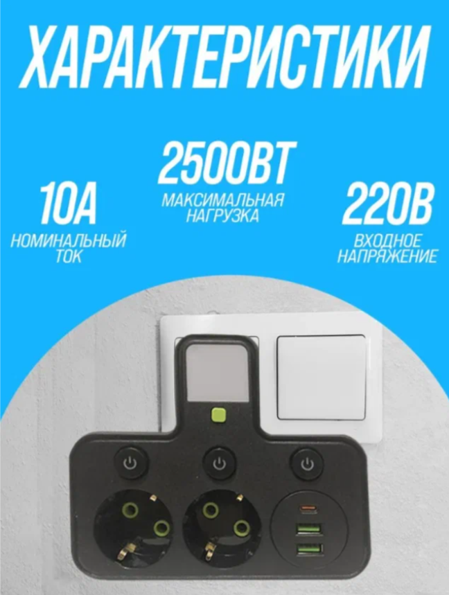 Отзывы на Сетевой фильтр / двойник для розетки плоский с 2 USB и Type - C