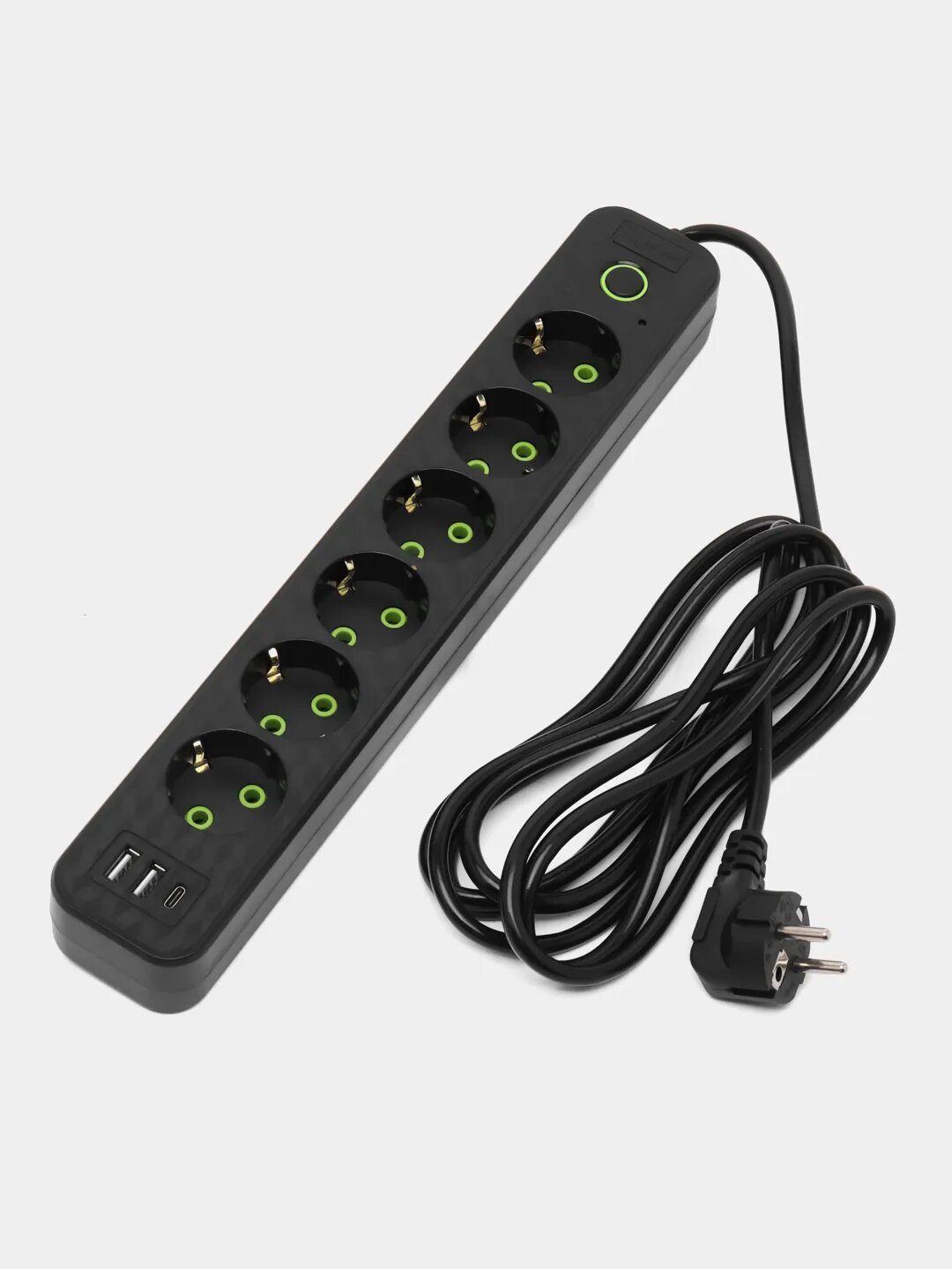 Сетевой фильтр с 6 розетками 2 USB + 1 Type-C Многофункциональный удлинитель с предохранителем Провод 3 метра Выключатель на корпусе информация: