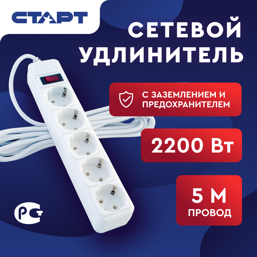 10 цен на Старт сетевой удлинитель-фильтр SP 5x5 ZVT белый, 5 розеток, 5м
