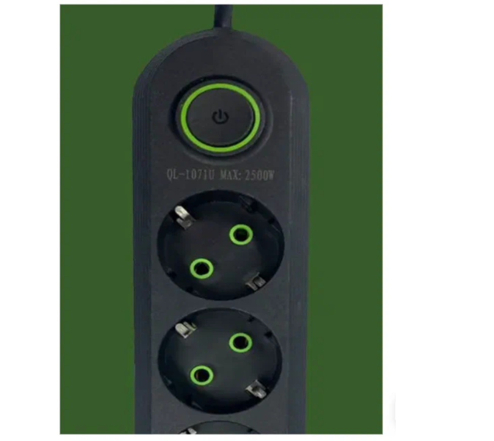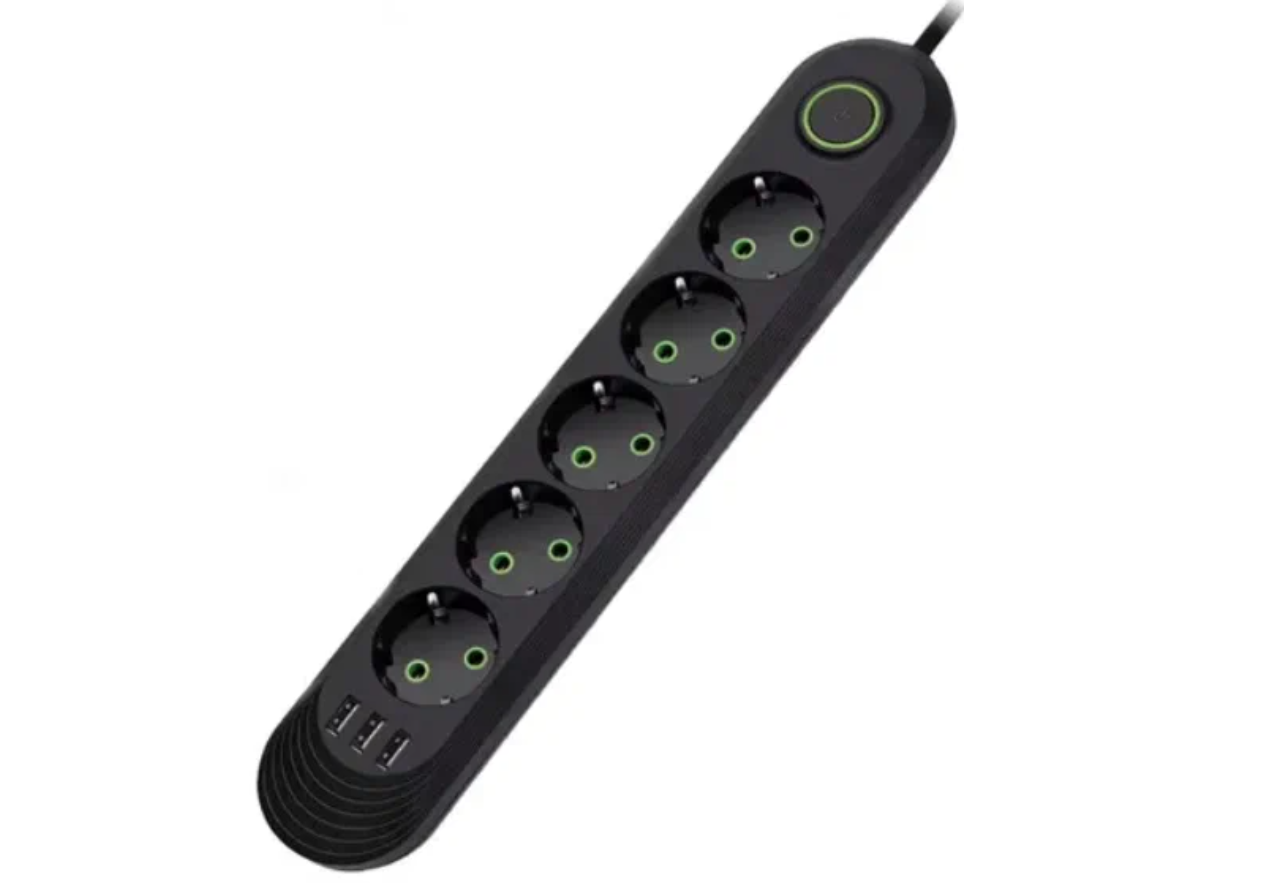 Отзывы на Удлинитель сетевой фильтр 3 метров 4 розетки + 3 USB черный EU