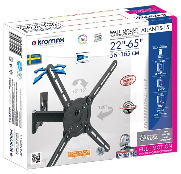 Kromax ATLANTIS-15 grey Наклонно-поворотный для LED TV 22"-65" информация: