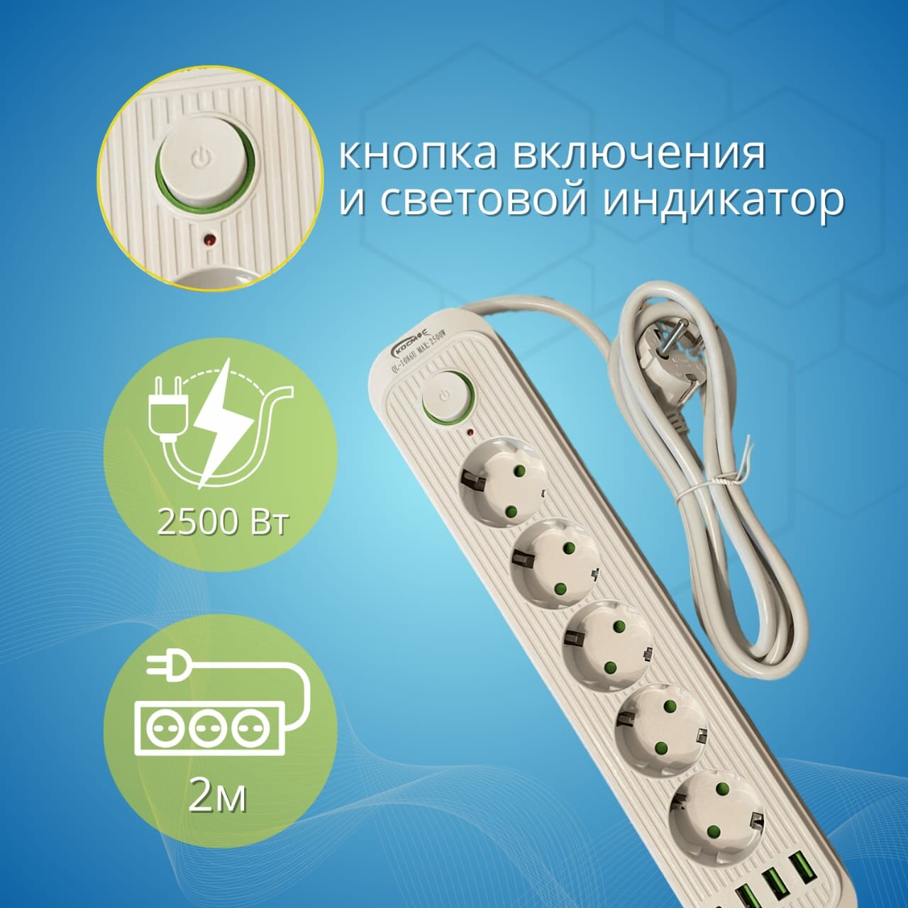 Отзывы на Удлинитель 5 розеток - сетевой фильтр с USB и USB Type-C , удлинитель 2 метра