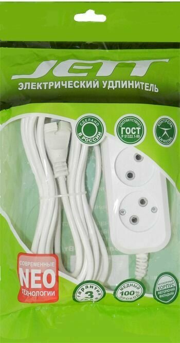 Электрический удлинитель JETT ( джетт) 2 гнезда ( ПВС ) 3 метра информация: