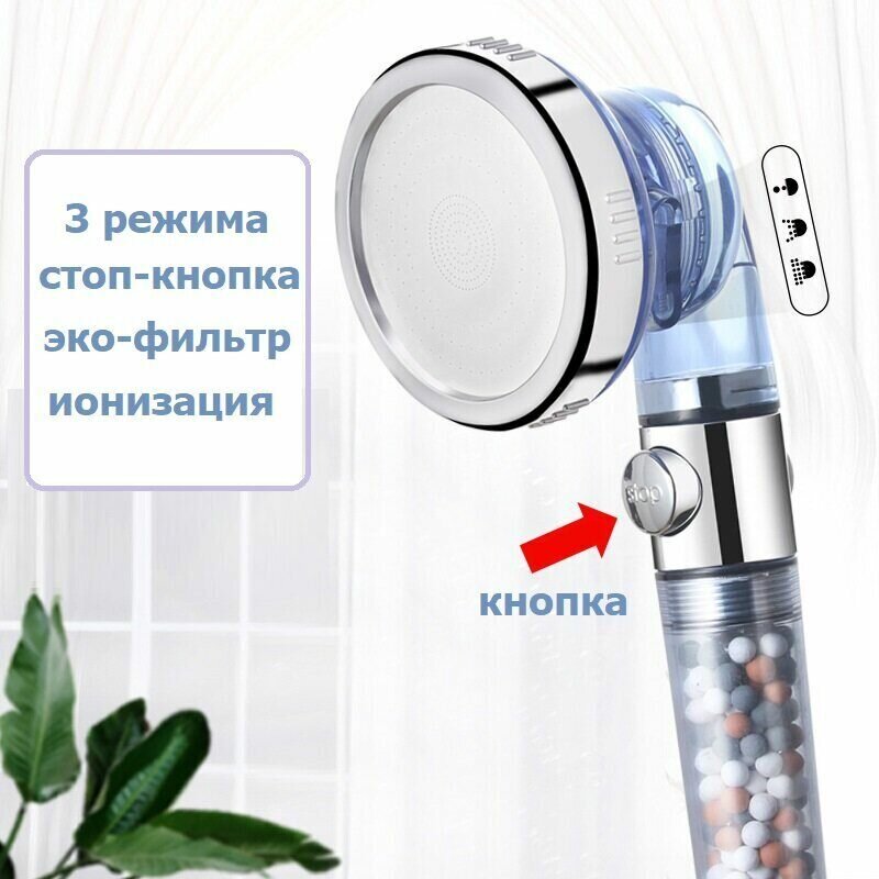 10 цен на Лейка для душа Anion Shower 3 режима, эко-фильтр и ионизация, стоп-кнопка