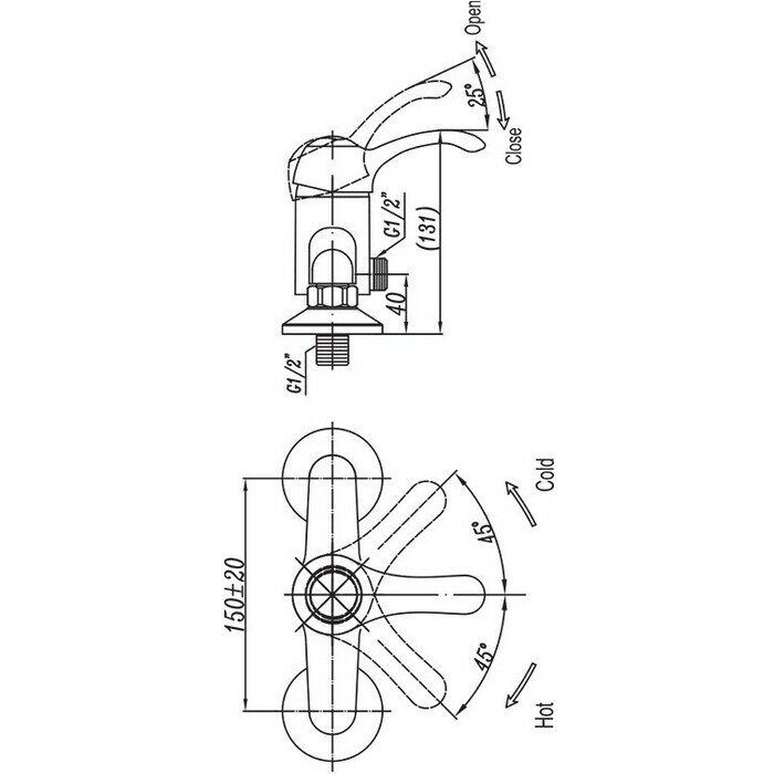 | Угол поворота рукоятки вертик. | 25 градусов |