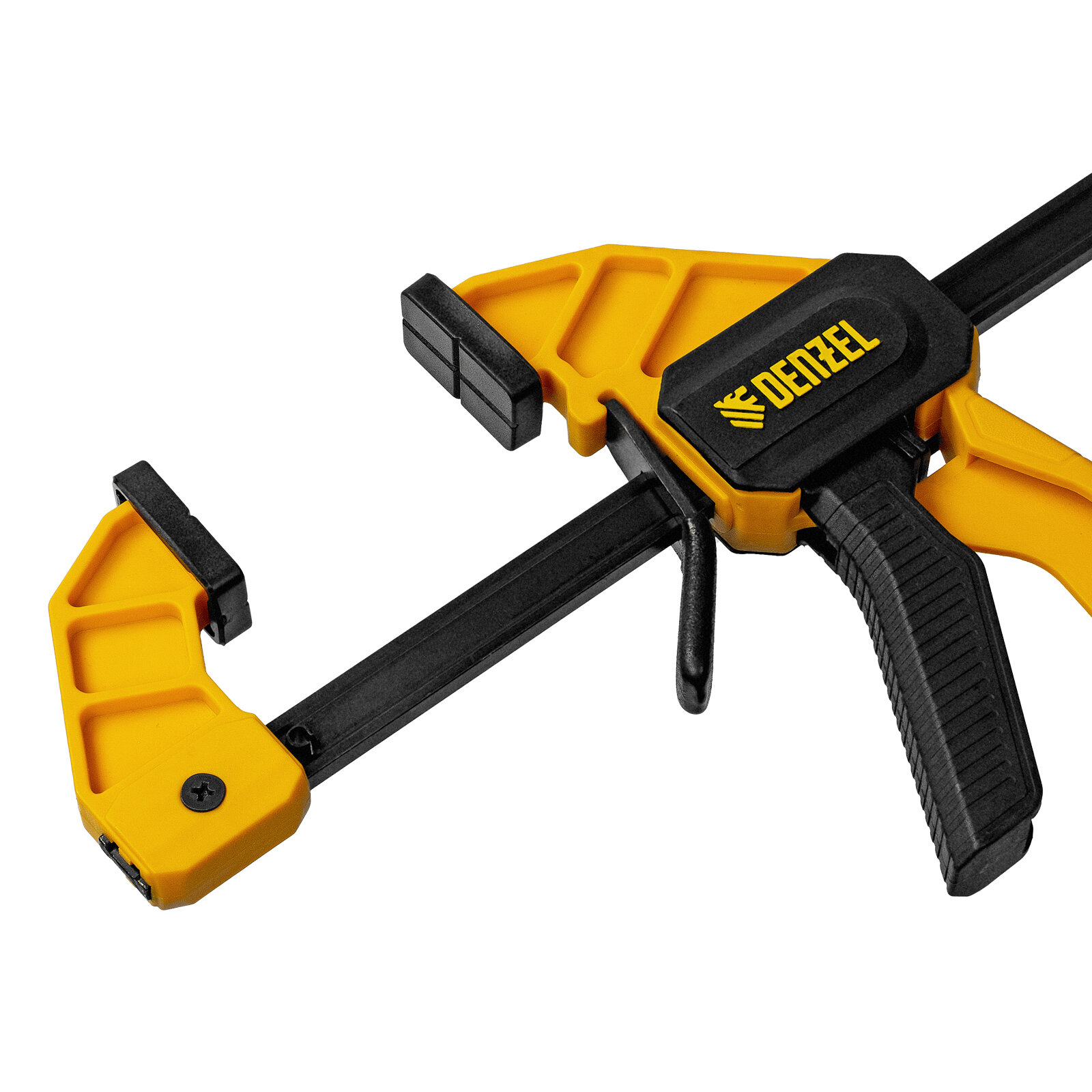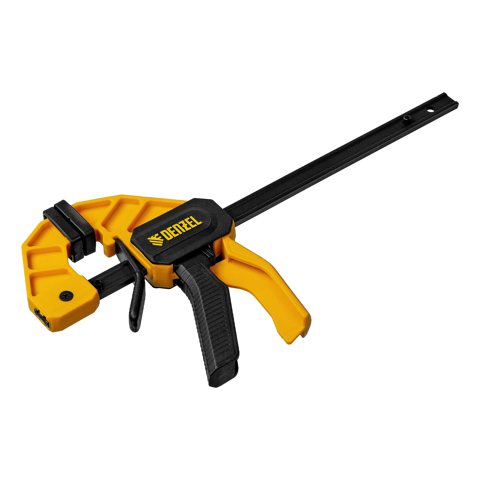 Отзывы на Струбцина F-образная, быстрозажимная, 150 х 55 мм, усиленный нейлоновый корпус Denzel 20501