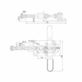 Прижим вертикальный со стопорной рукояткой KUKAMET 211-3-L, усилие 255 кг