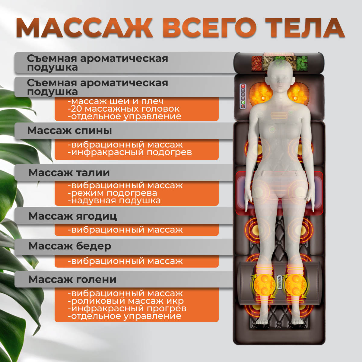 10 цен на Массажный матрас для всего тела 4в1 FS-F5. Коврик электрический с пультом.