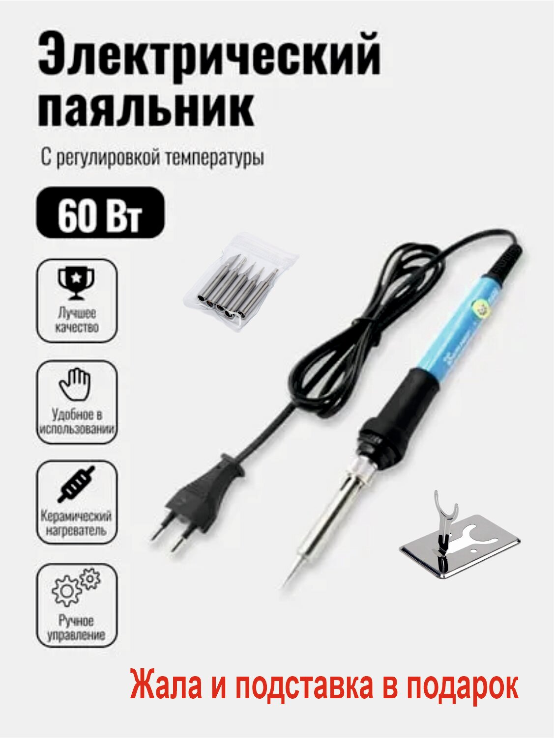 Отзывы на Паяльник 60 Вт с регулировкой температуры, керамический нагреватель, с набором сменных жал и подставкой