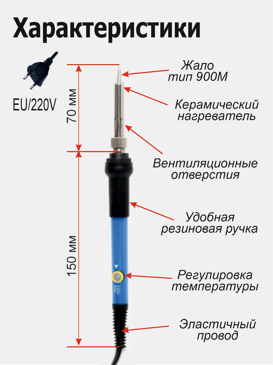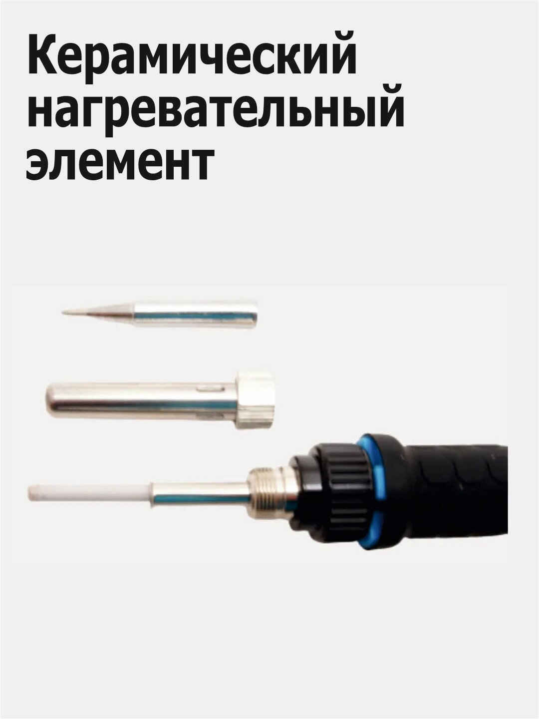 Паяльник 60 Вт с регулировкой температуры, керамический нагреватель, с набором сменных жал и подставкой информация: