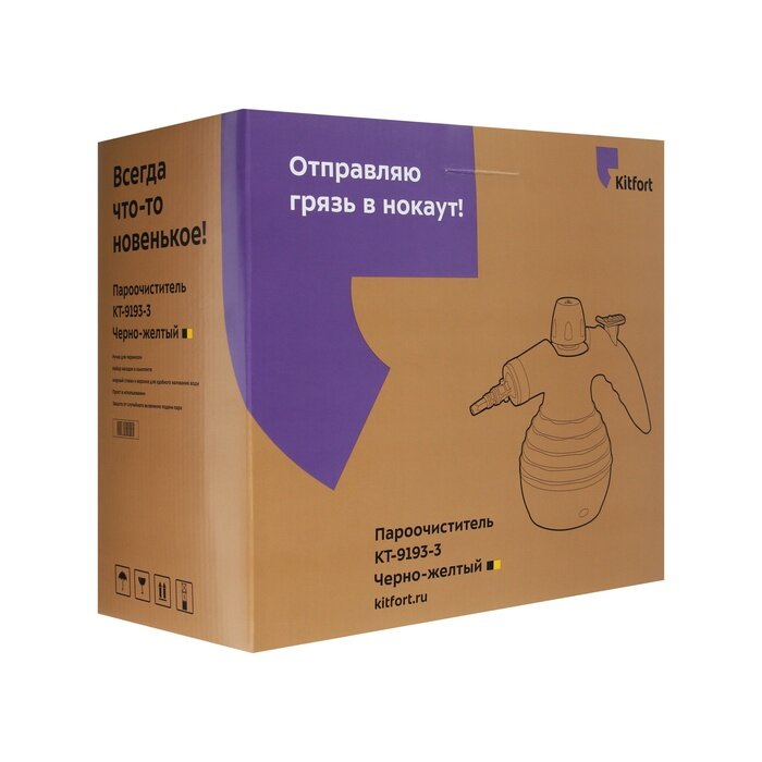 Пароочиститель KT-9193-3, 1050 Вт, 0.35 л, 30 г/мин, нагрев 3 мин, чёрно-жёлтый информация:
