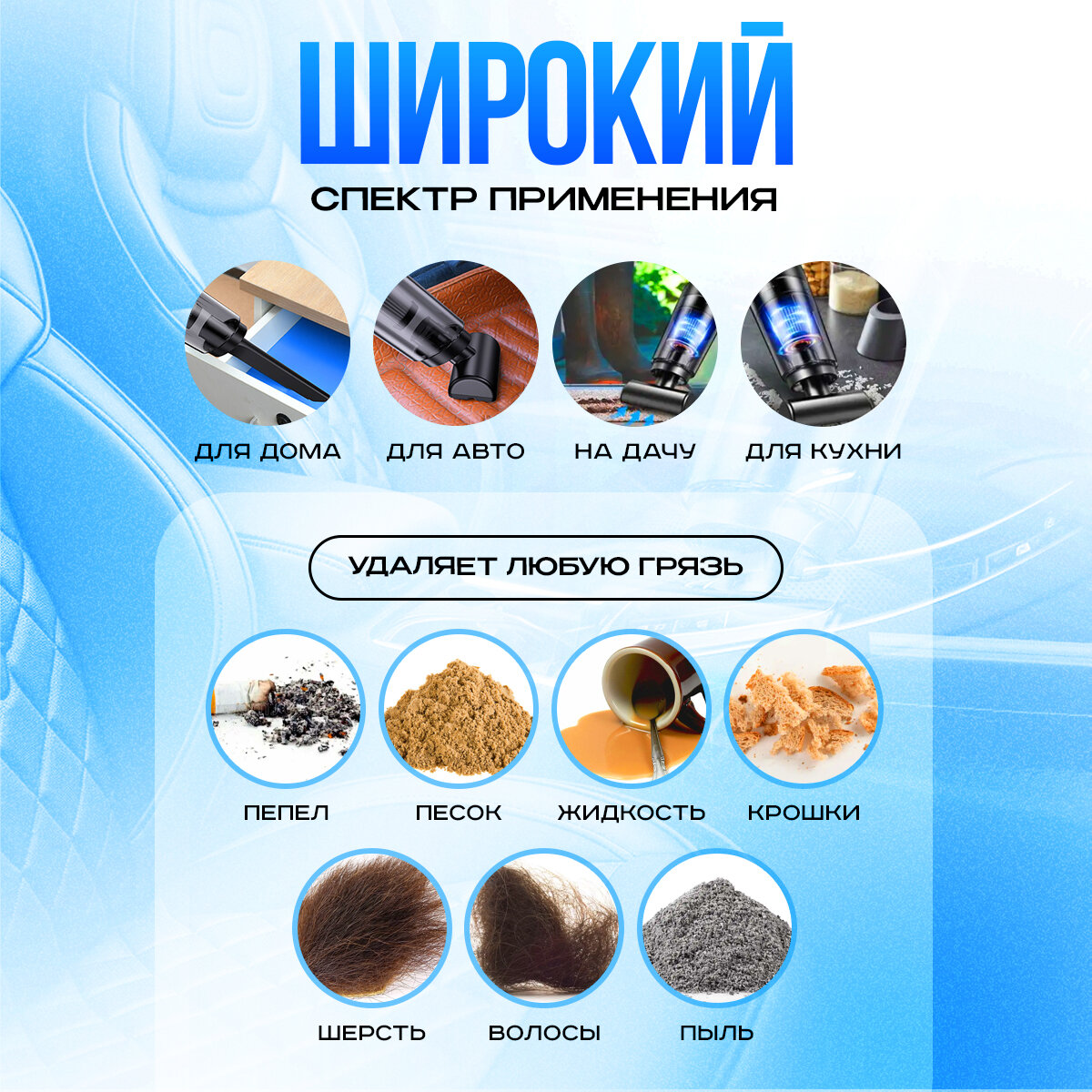 Универсальный пылесос / Пылесос автомобильный с подсветкой черный / Авто пылесос / Беспроводной, ручной пылесос для автомобиля