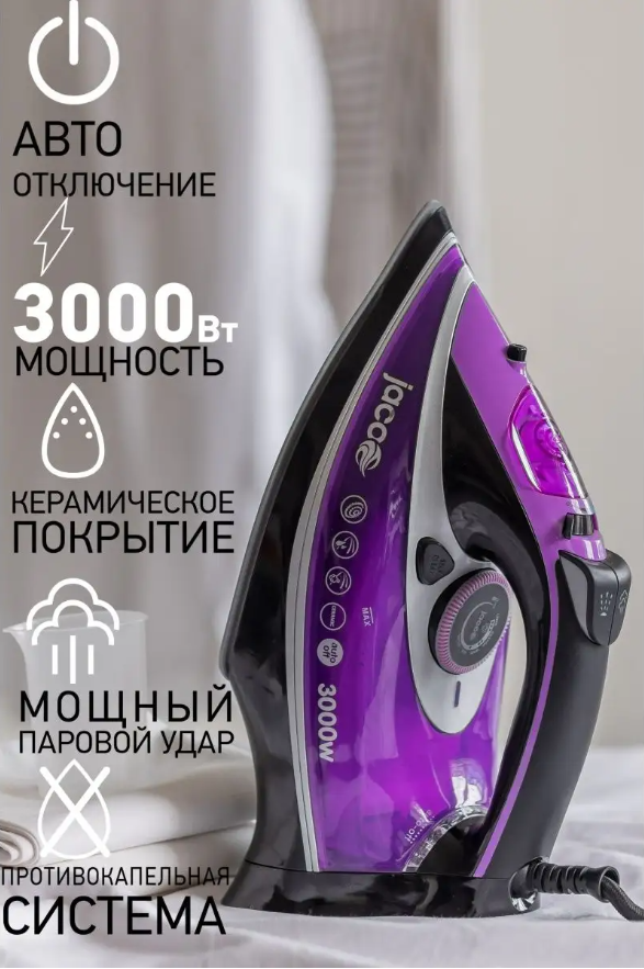 Утюг JACOO JIS-1300 мощный паровой удар, мощность 3000 Вт информация: