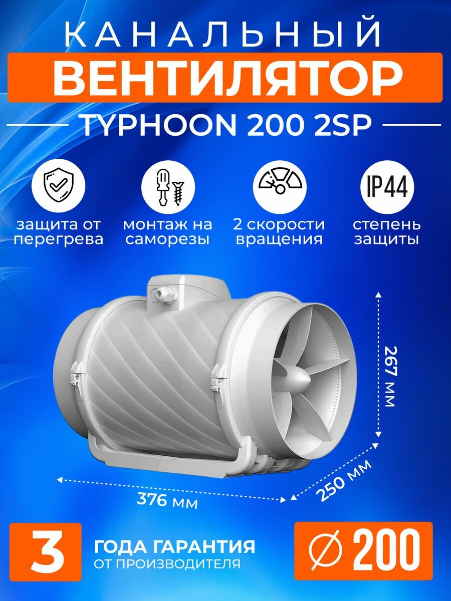 Вентилятор канальный TYPHOON 200 2SP коммерческий