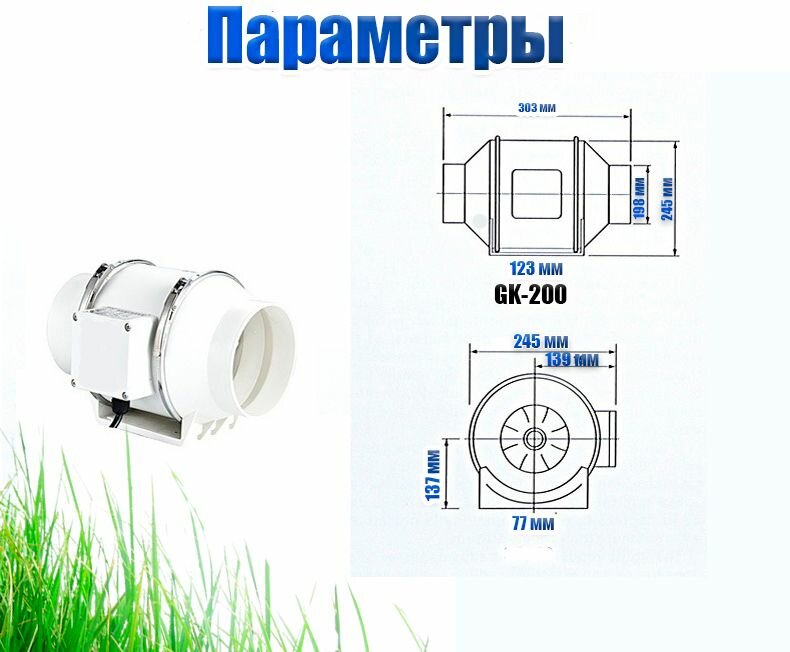 Вентилятор канальный бесшумный/ 200 мм 900 кубов/ Silent 45 дб/ Скорость 2600 об.мин информация: