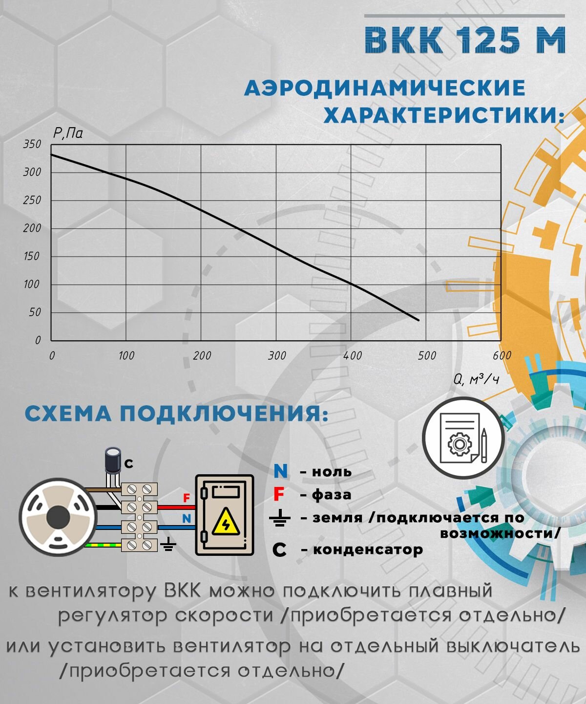 ВКК 125 М вентилятор канальный центробежный 500 куб.м/ч. 320 Па, диаметр 125 мм информация:
