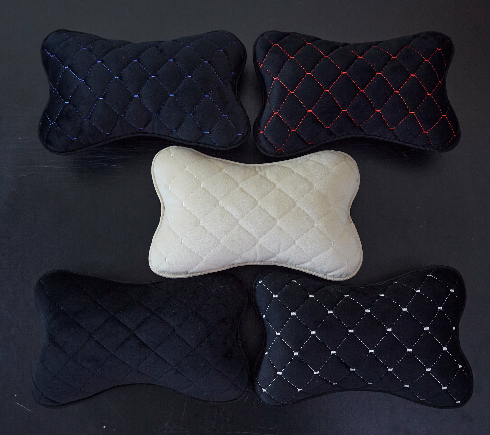Автомобильная подушка на подголовник 1 штука из велюра с белой строчкой 399 ₽