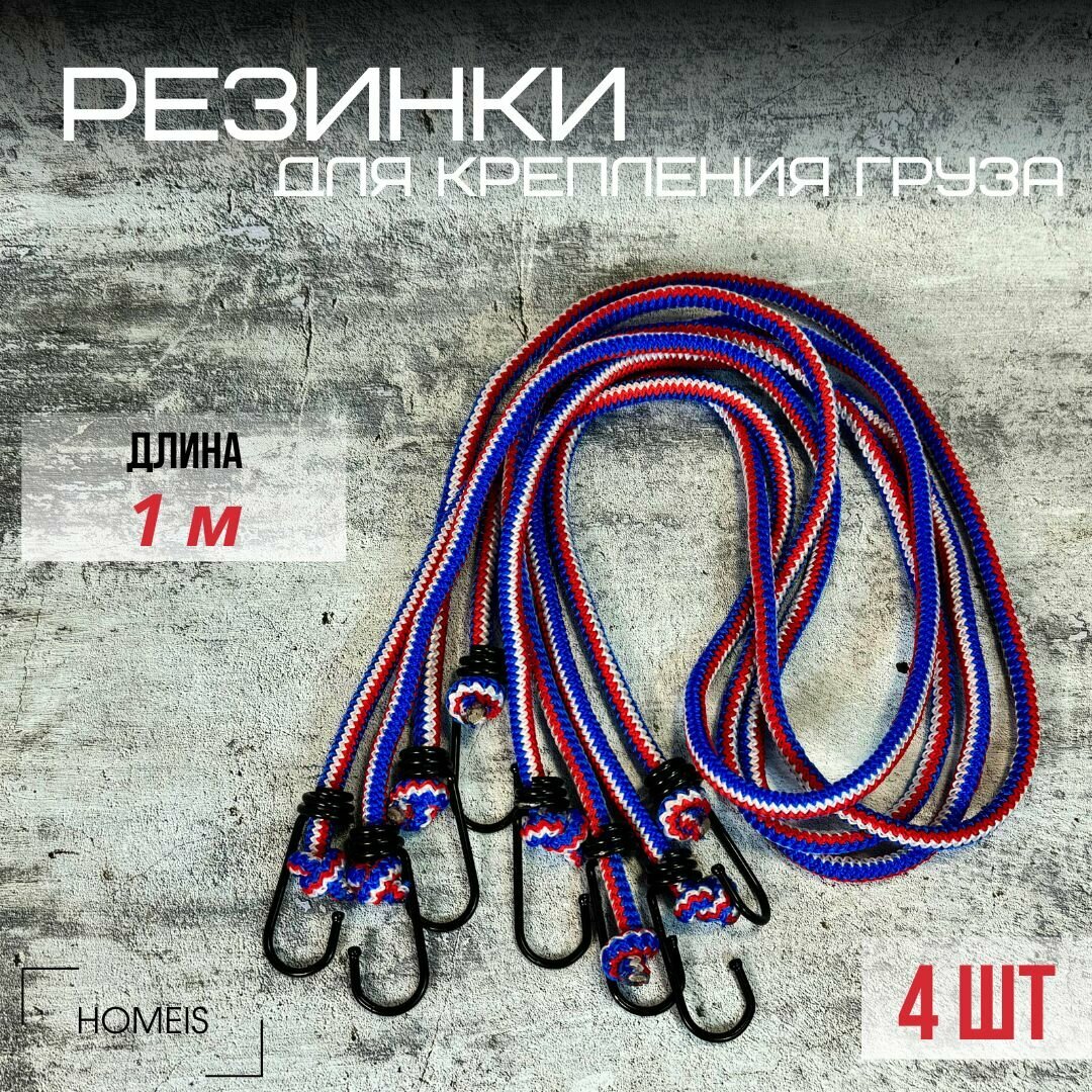 Резинка крепления груза 1м х 8мм - 4 шт / Ремень эластичный для крепления багажа с металлическими крюками информация: