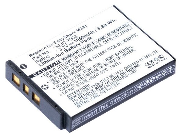 Аккумуляторная батарея Pitatel SEB-PV404 для фотоаппарата Kodak EasyShare M380, M381, M420, MD81 (KLIC-7003) 1050mAh информация: