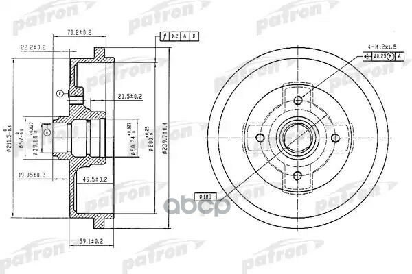 Барабан тормозной mitsubishi carisma 95 06, carisma седан 96 06, colt iv 92 96, colt v 96 00 patron арт. pdr1486 - Patron арт. PDR1486