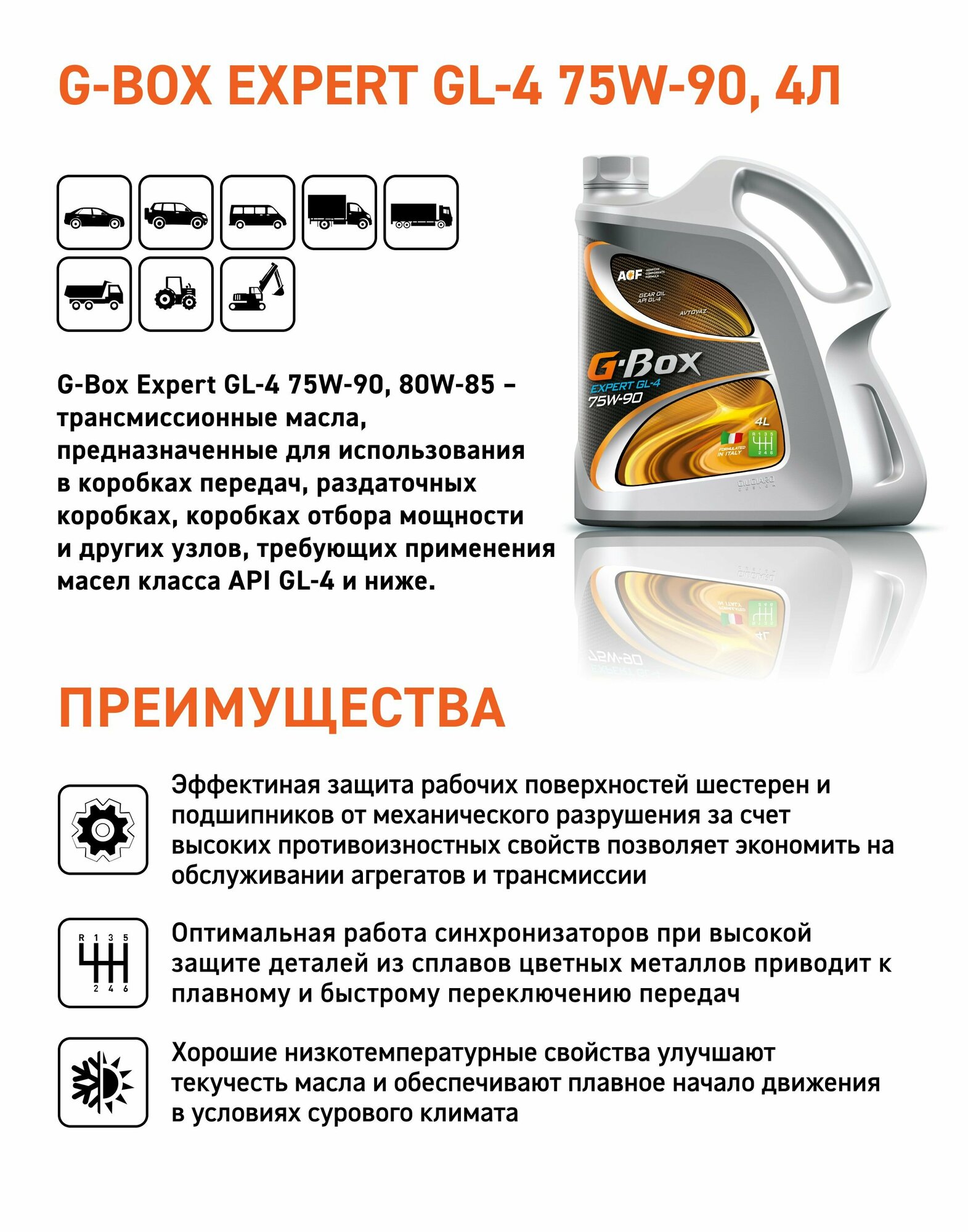 Трансмиссионное масло G-Energy G-Box GL-4 75w-90 (4л) информация: