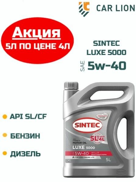 10 цен на Sintec LUXE 5000 SAE 5W-40 API SL/CF 5л Акция 5л по цене 4л (600299)