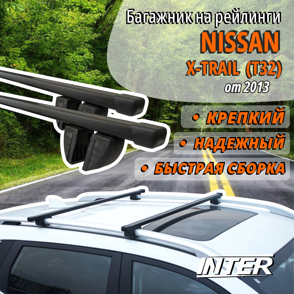Багажник на Ниссан Х-Трейл Т32 на крышу автомобиля Nissan X-Trail (T32) на рейлинги (внедорожник от 2013). Прямоугольные дуги информация: