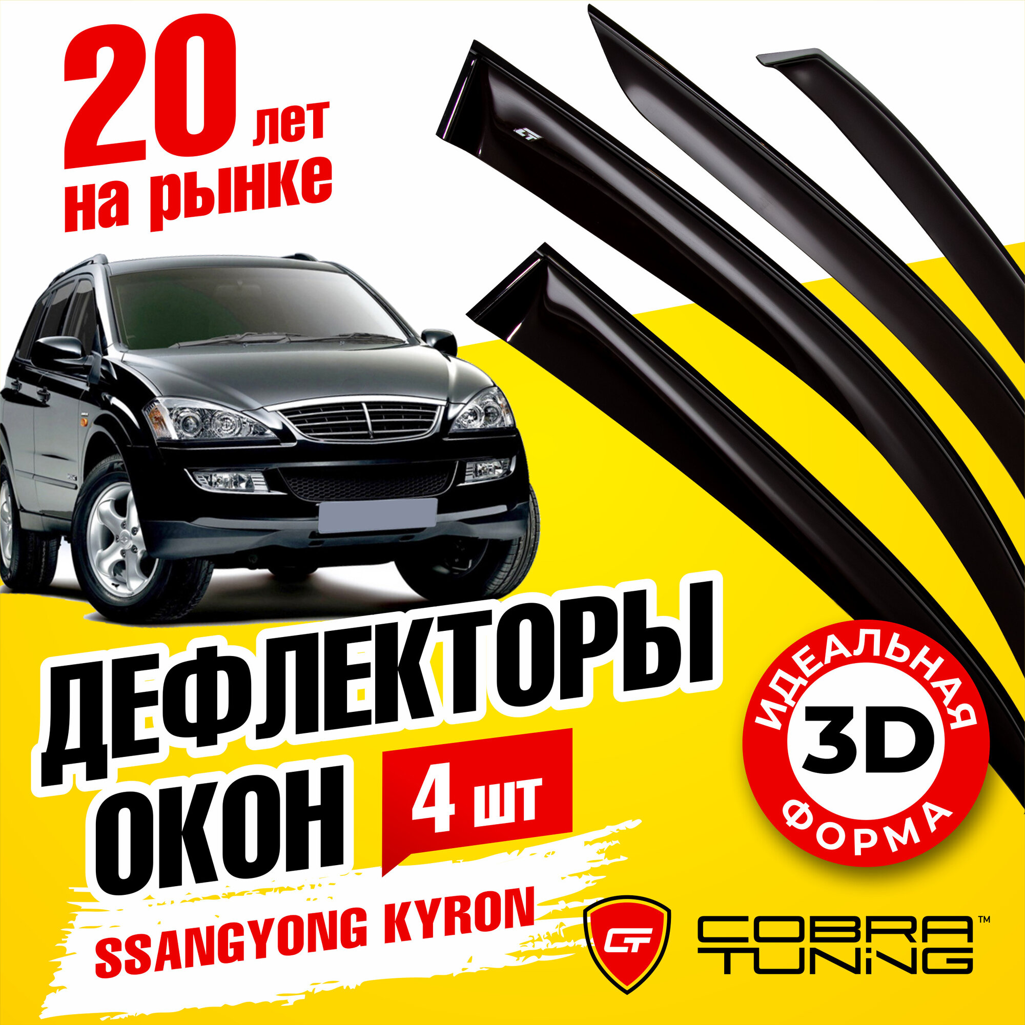 10 цен на Дефлекторы боковых окон для Ssang Yong Kyron (Санг Ёнг Кайрон) 2006-2015, ветровики на двери автомобиля, Cobra Tuning