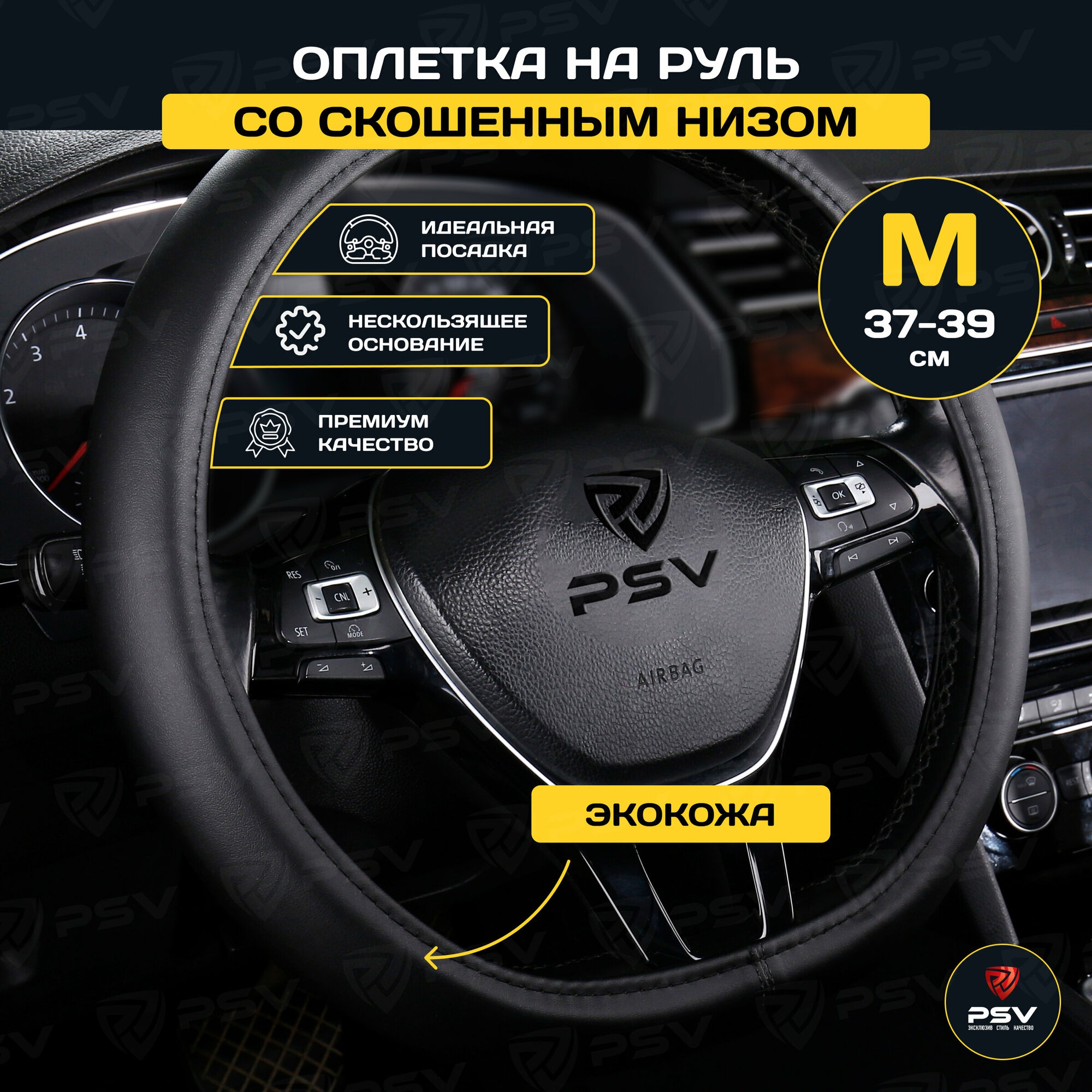 Отзывы на Оплетка чехол на руль PSV FACTOR CORNER со скошенным низом (Черный) M 37-39см ,экокожа