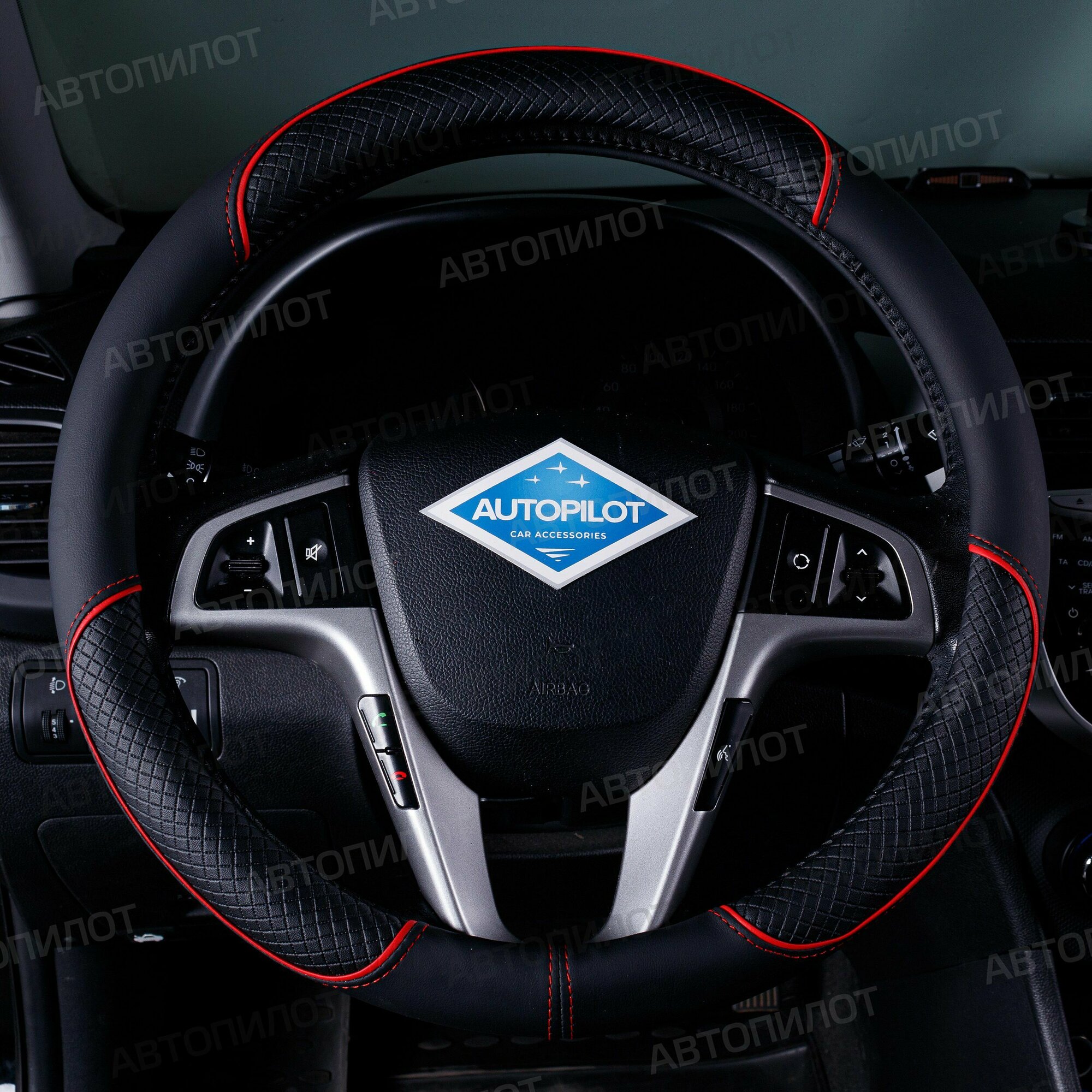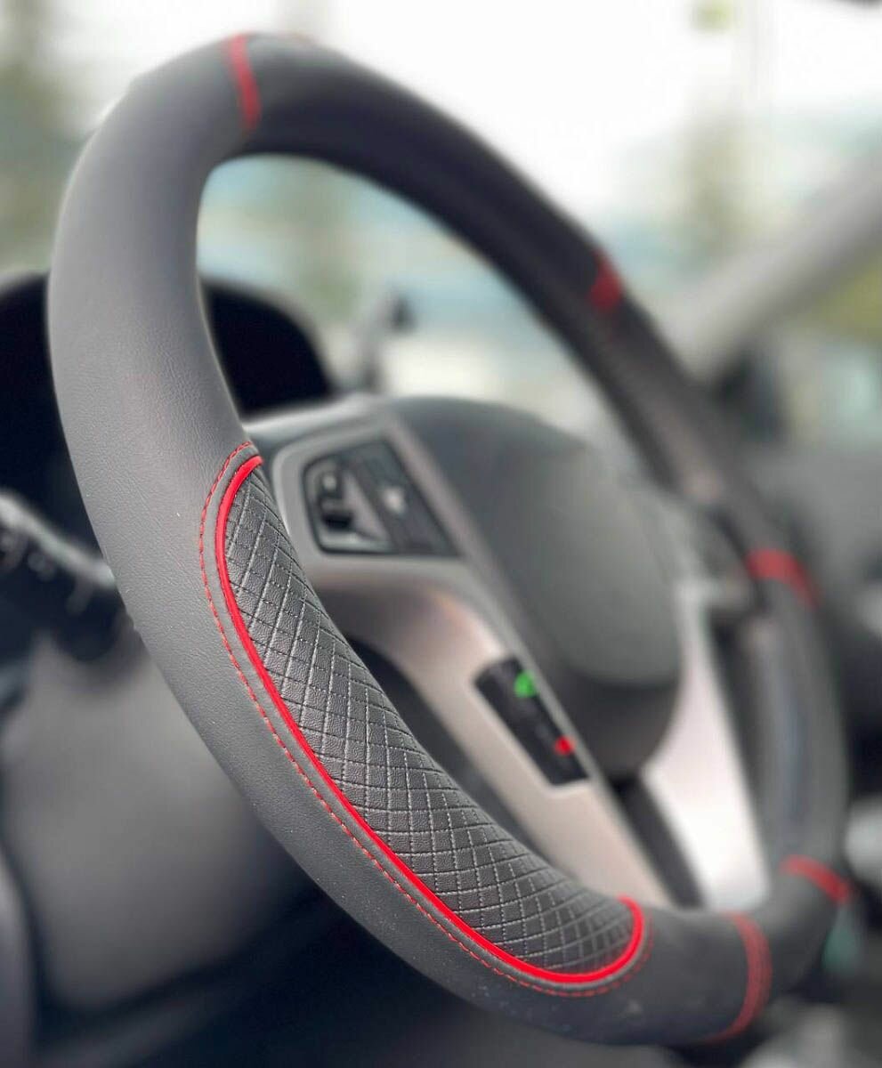 Отзывы на Оплетка на руль Хендай Акцент (2006 - 2011) седан / Hyundai Accent, Искусственная кожа (высокого качества), Черный с красной строчкой