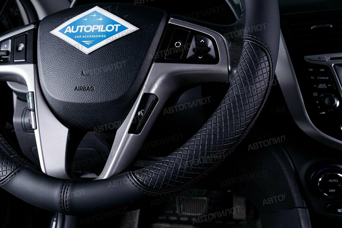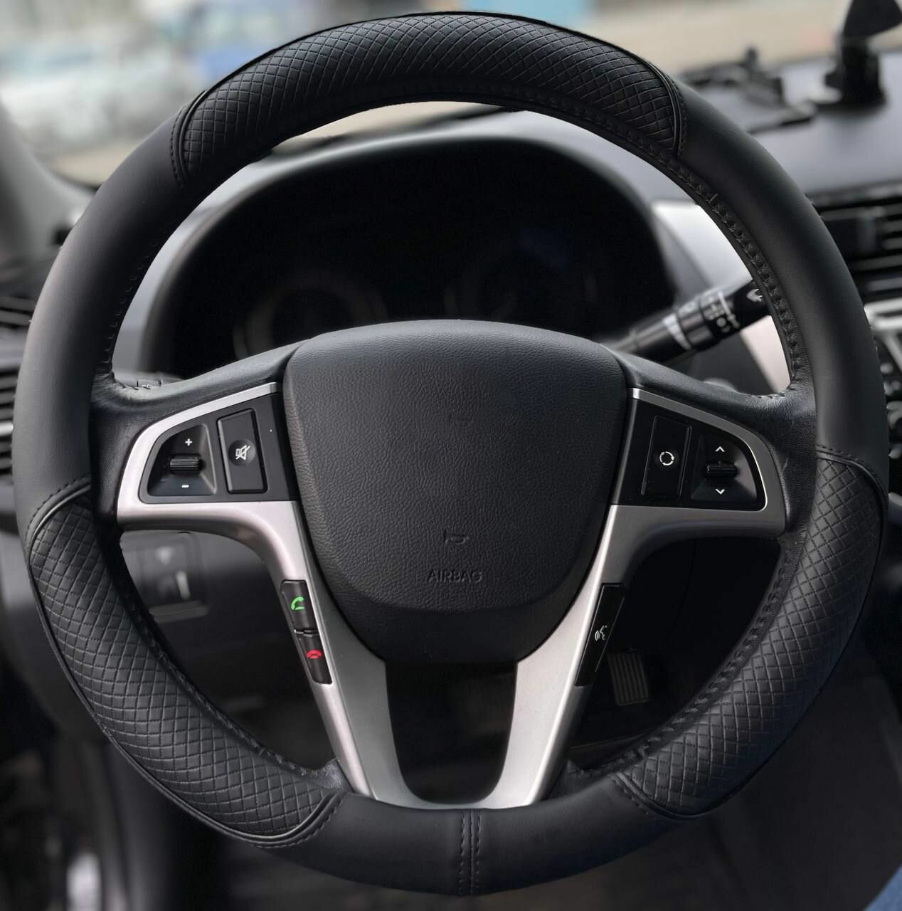 Оплетка на руль Лада Веста (2022 - 2024) седан / LADA (ВАЗ) Vesta, Экокожа, (накидка / чехол на руль) Черный