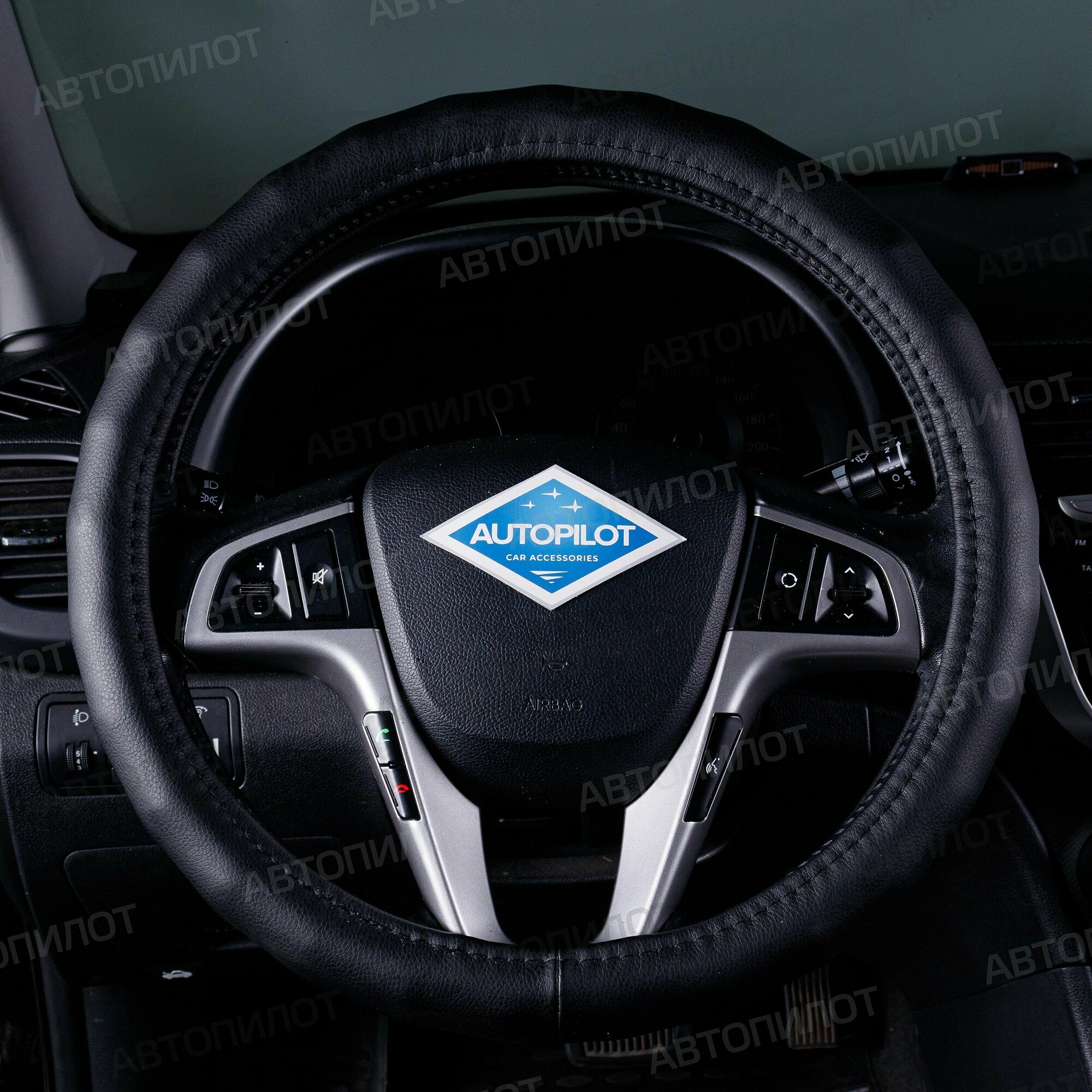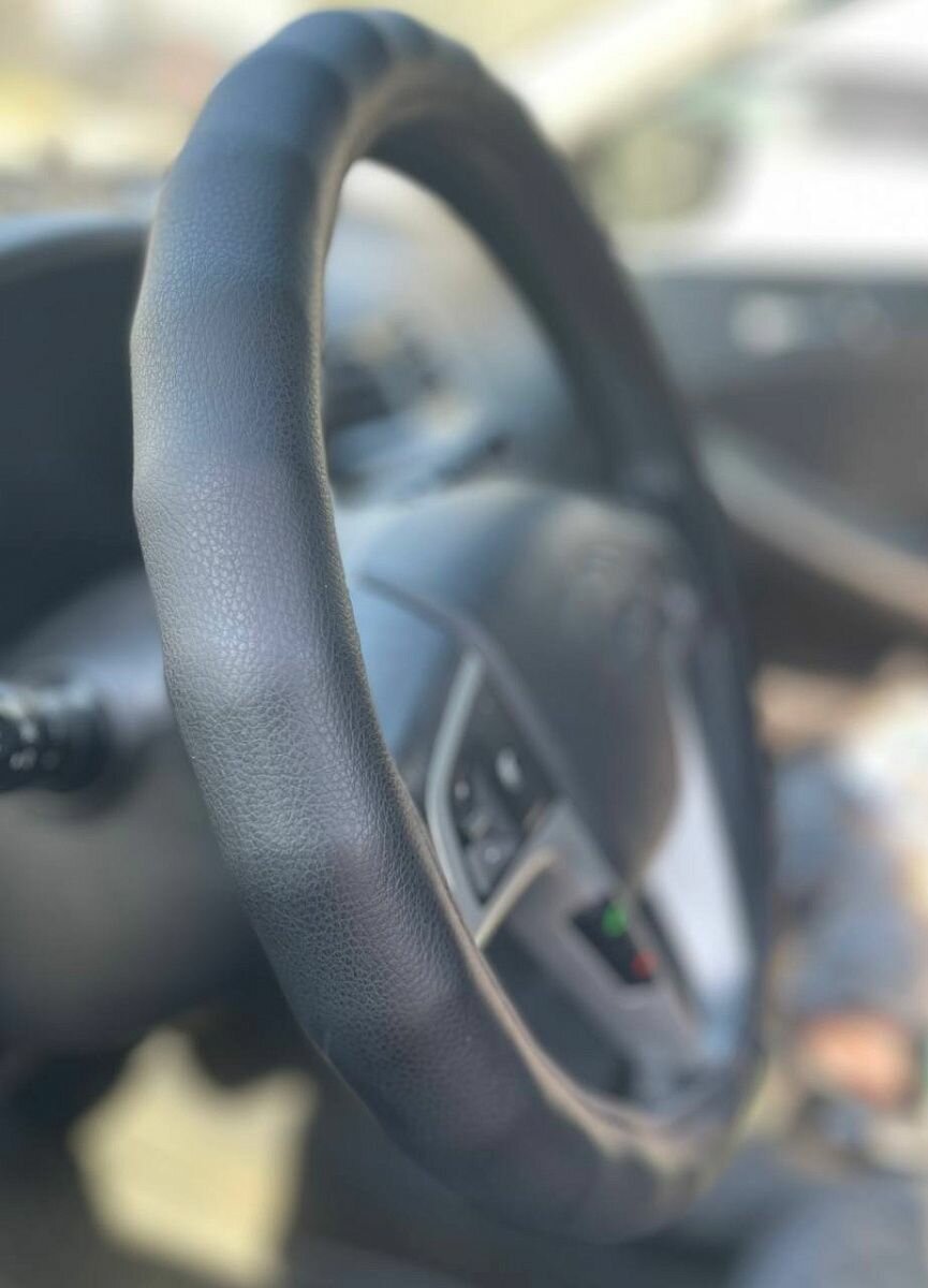 Оплетка на руль Лада Веста (2022 - 2024) седан / LADA (ВАЗ) Vesta, Экокожа, (накидка / чехол на руль) Черный