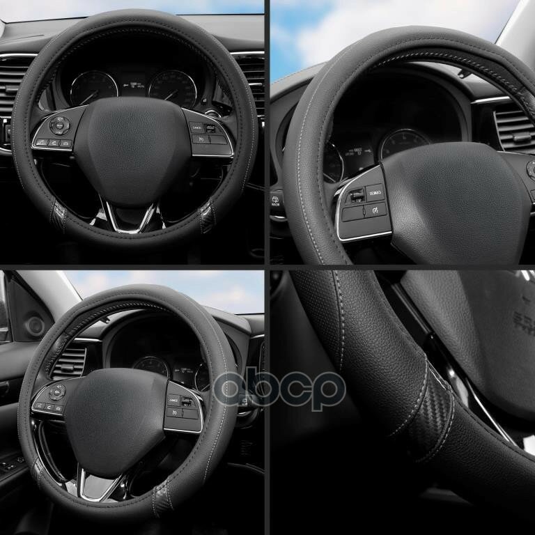Оплетка на руль универсальная из экокожи «CARBON» М 37-39 см (чёрная, строчка чёрная) belais #21608