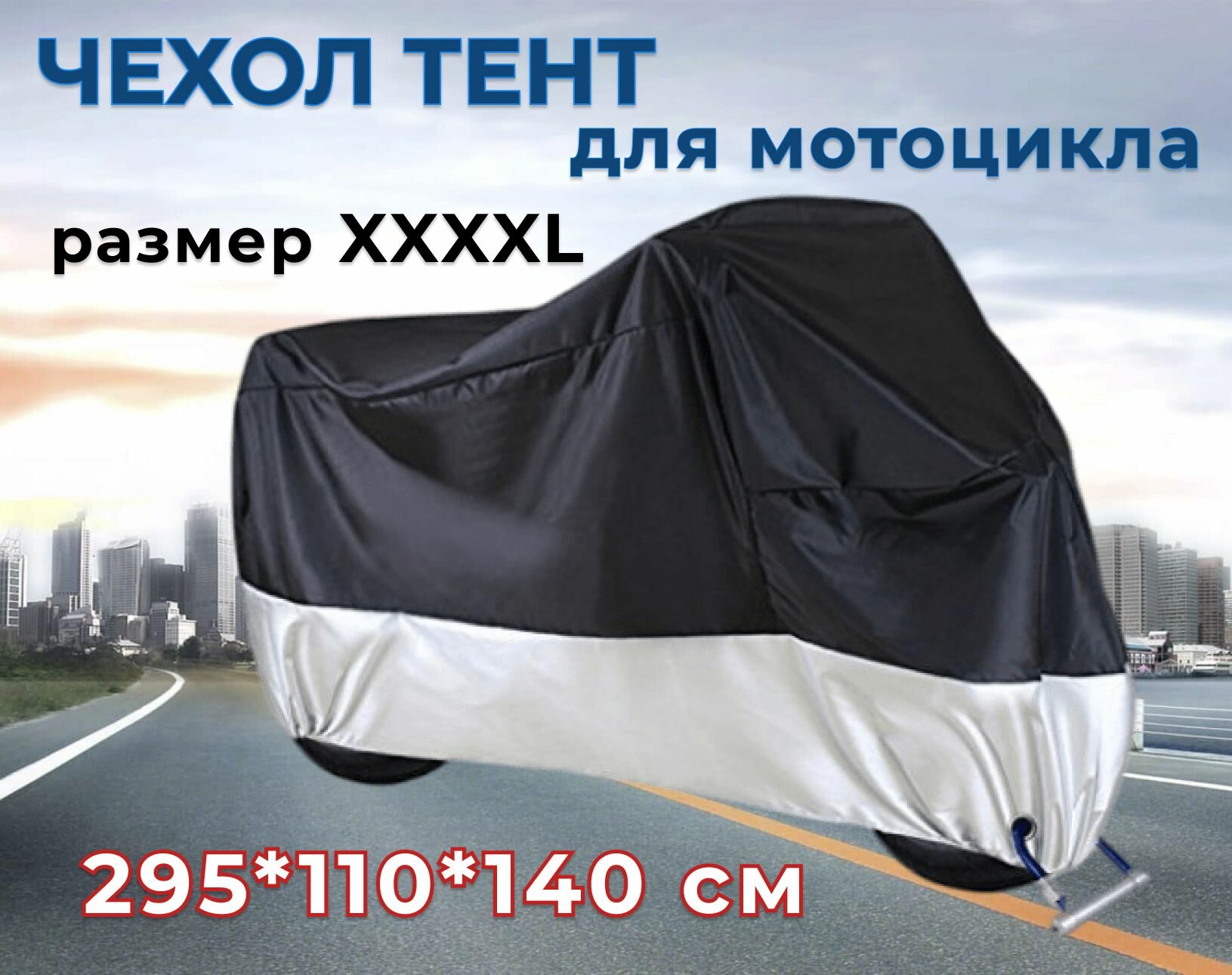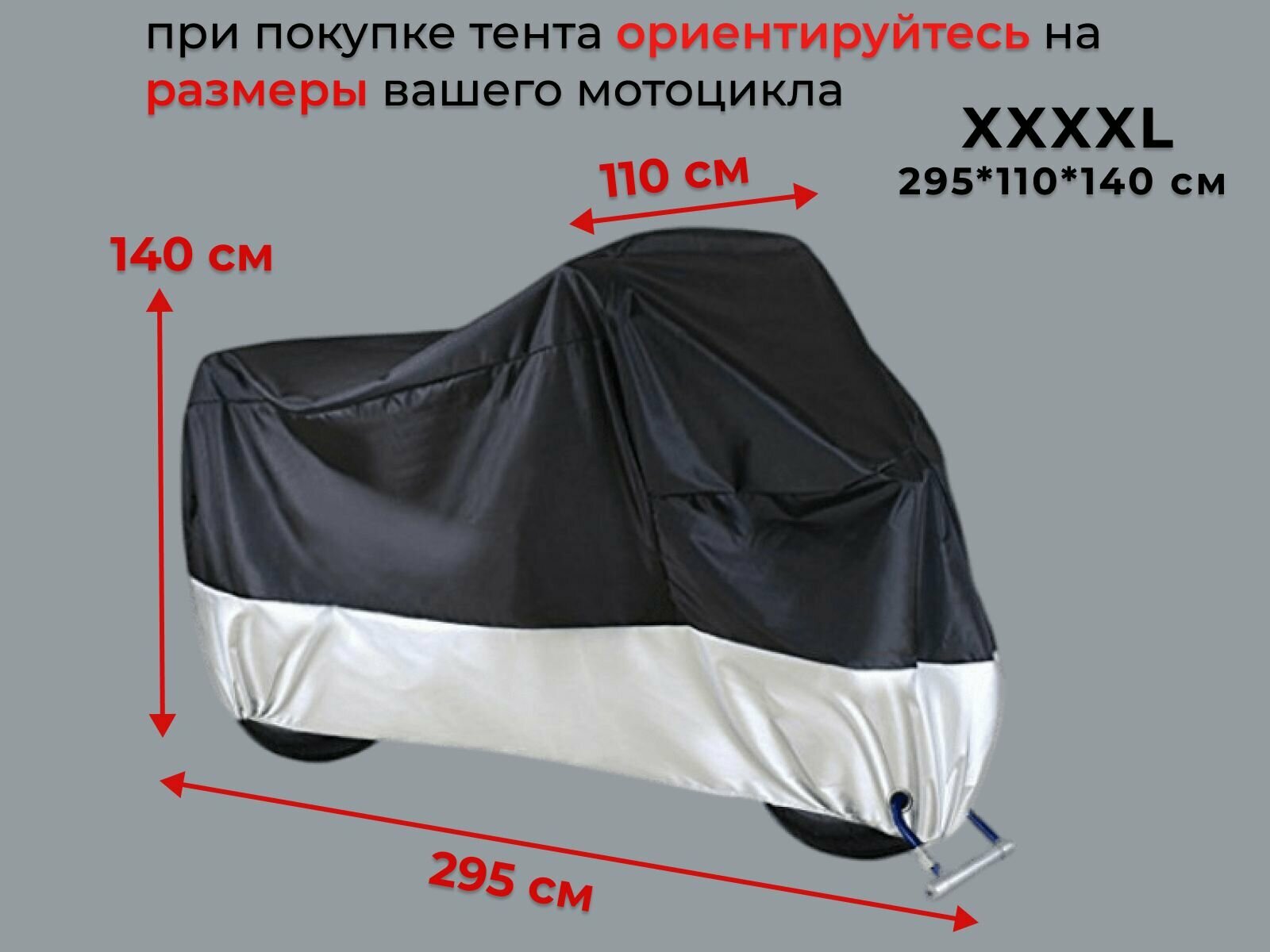 Отзывы на Чехол-тент для мотоцикла 4XL 295 x 110 x 140 см черно-серебристый