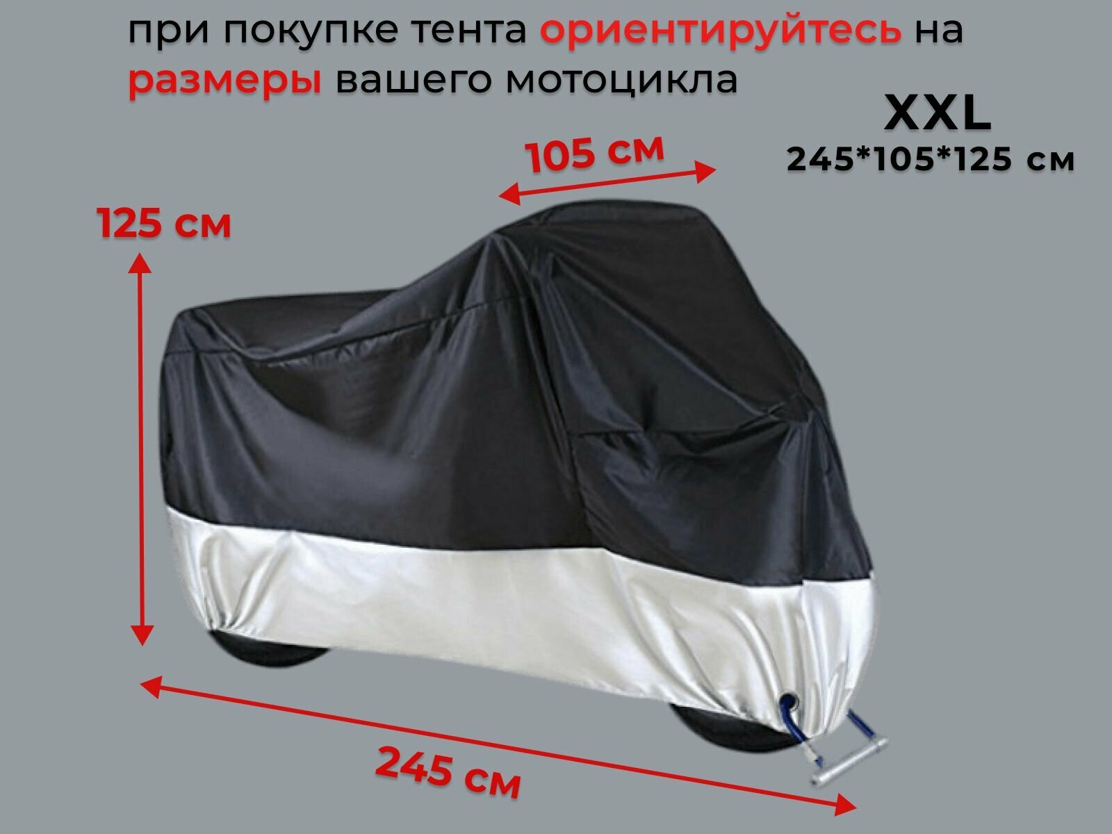 Чехол-тент для мотоцикла XXL 245 x 105 x 125 см черно-серебристый информация: