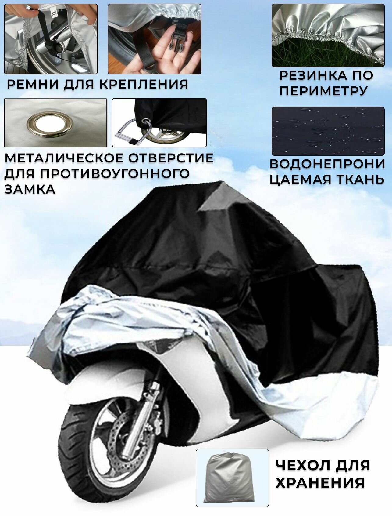 Отзывы на Чехол-тент для мотоцикла XXL 245 x 105 x 125 см черно-серебристый