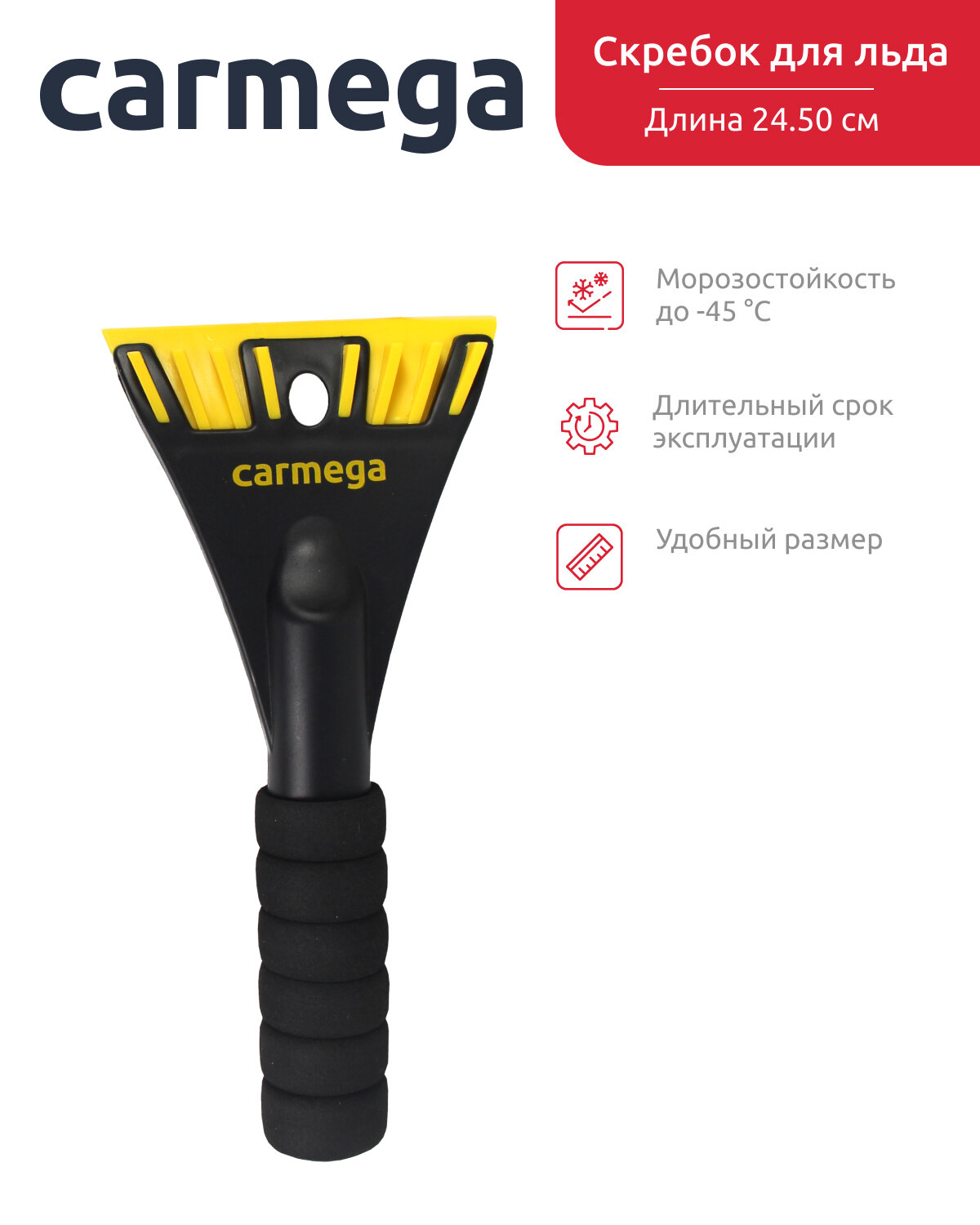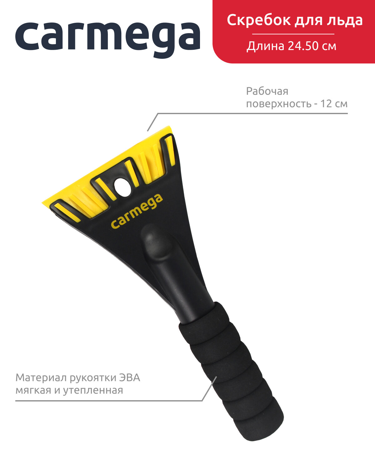 Автомобильная щетка для снега CARMEGA 63см со скребком для льда, мягкая ручка 578 ₽