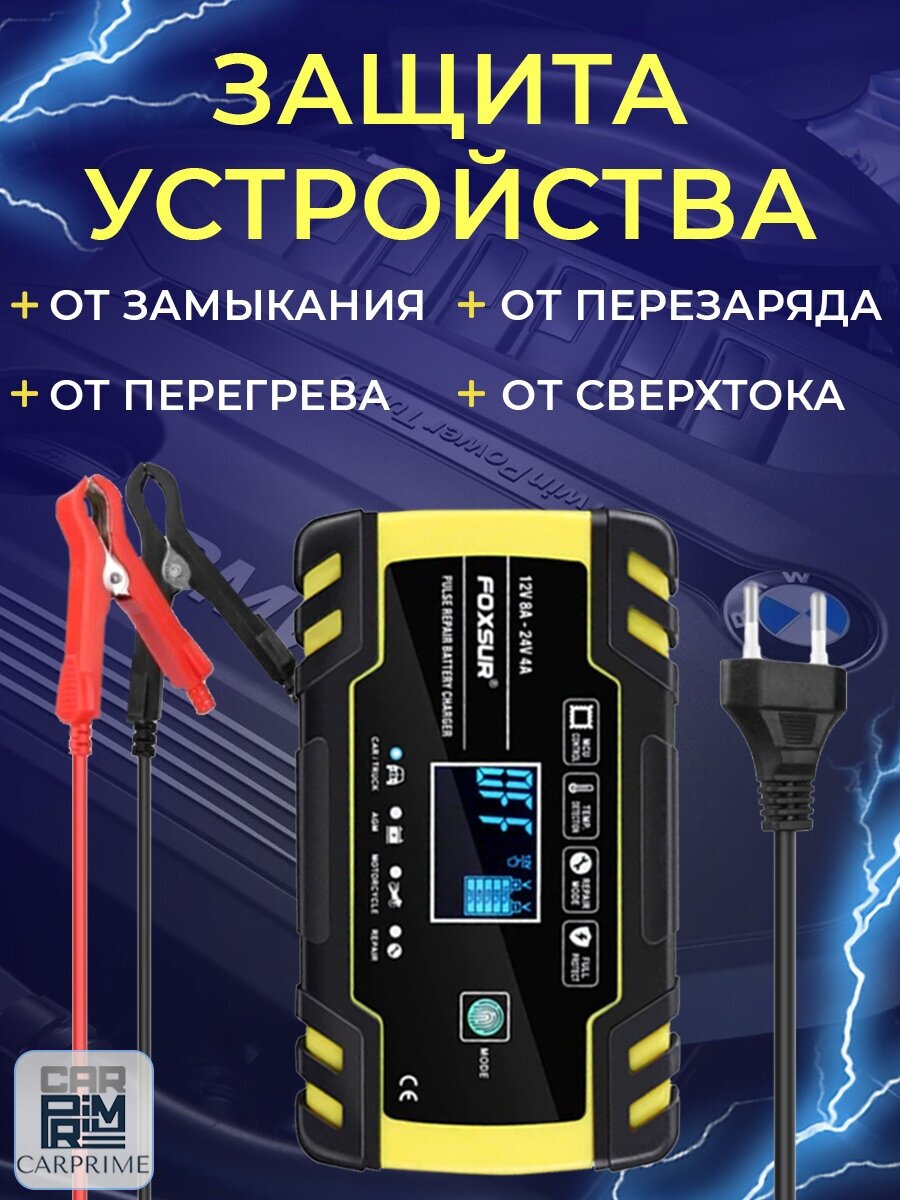 Автоматическое умное зарядное устройство FOXSUR для 12В-24В автомобильных аккумуляторов (акк. 4-100 Ач)