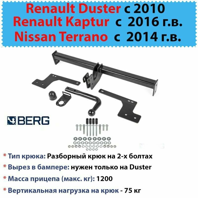 Устройство прицепное BERG, Renault Duster/Kaptur, Nissan Terrano, шар А, 1200/75 кг информация:
