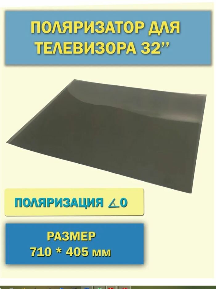 Поляризатор для телевизора 32 дюйма диагонали 710 х 405 мм поляризационная пленка для ТВ поляризационная пленка информация: